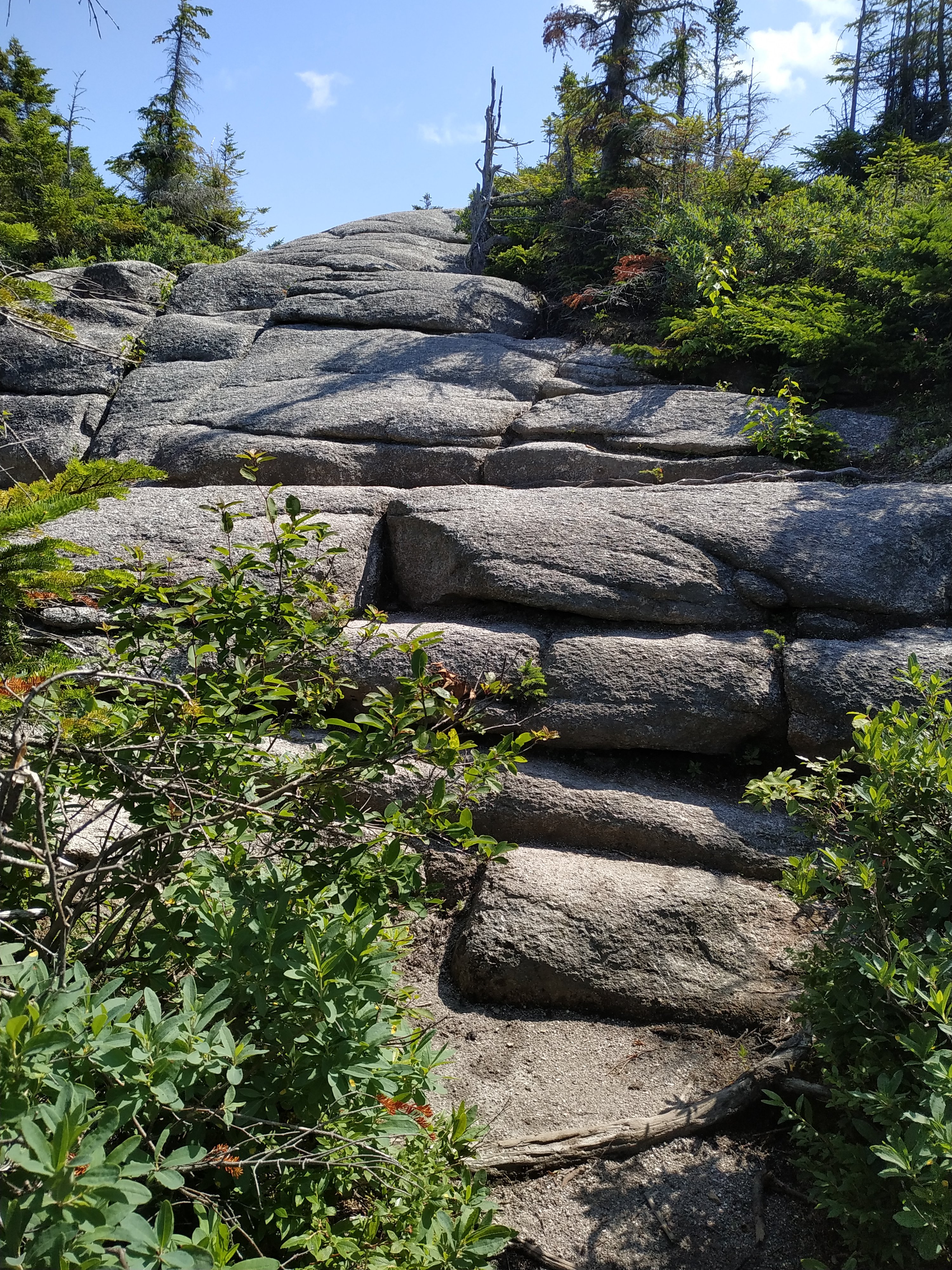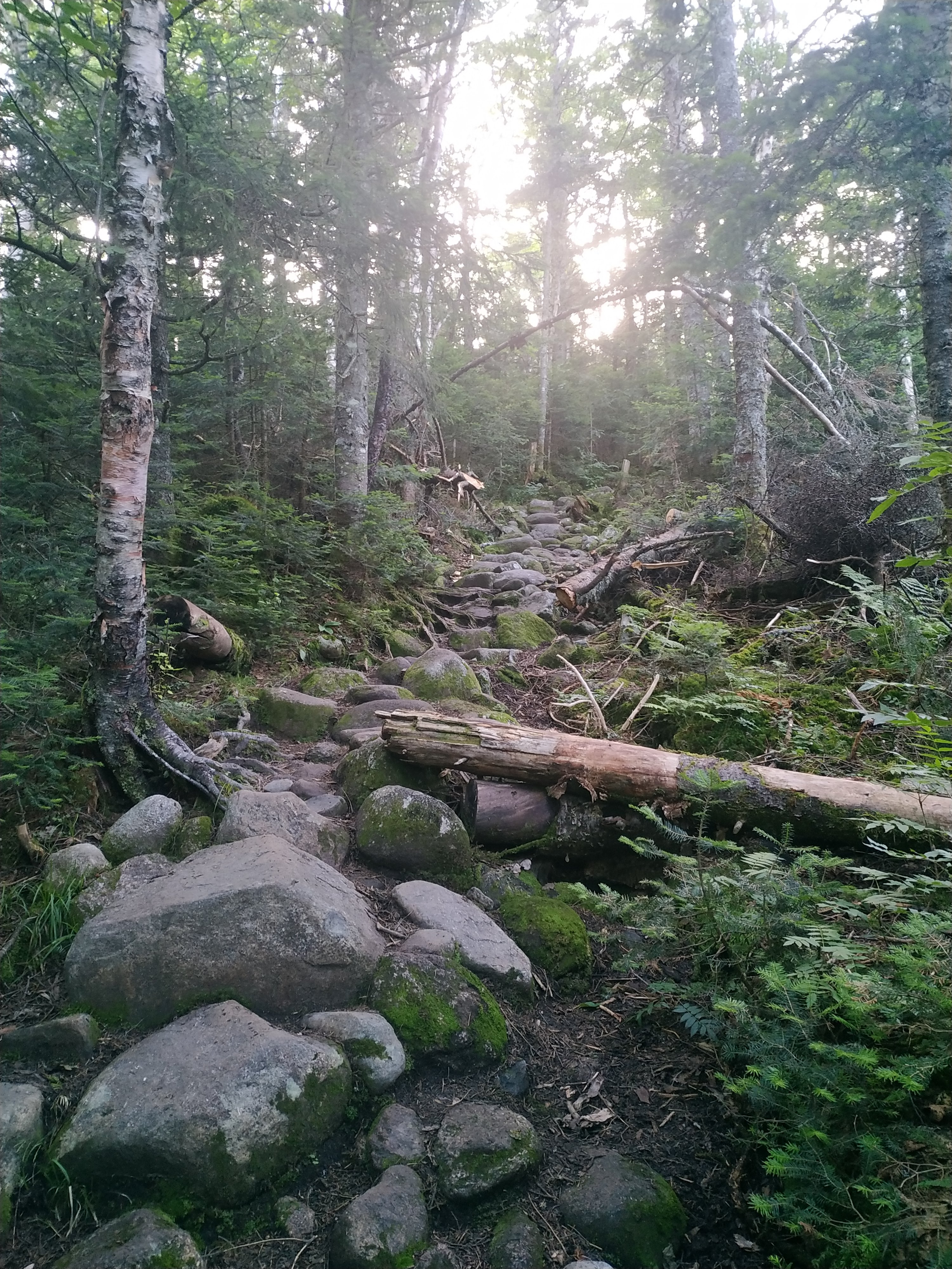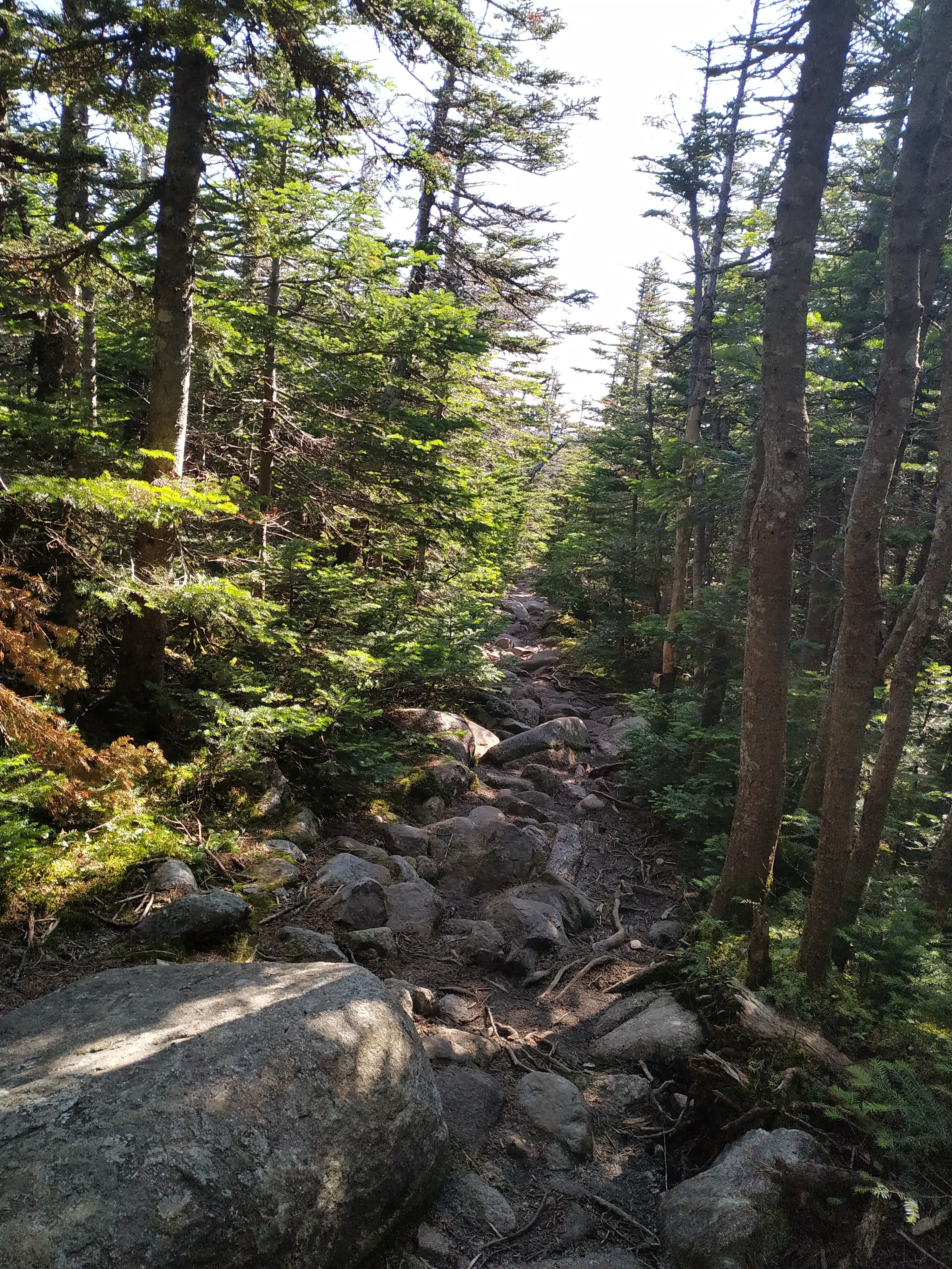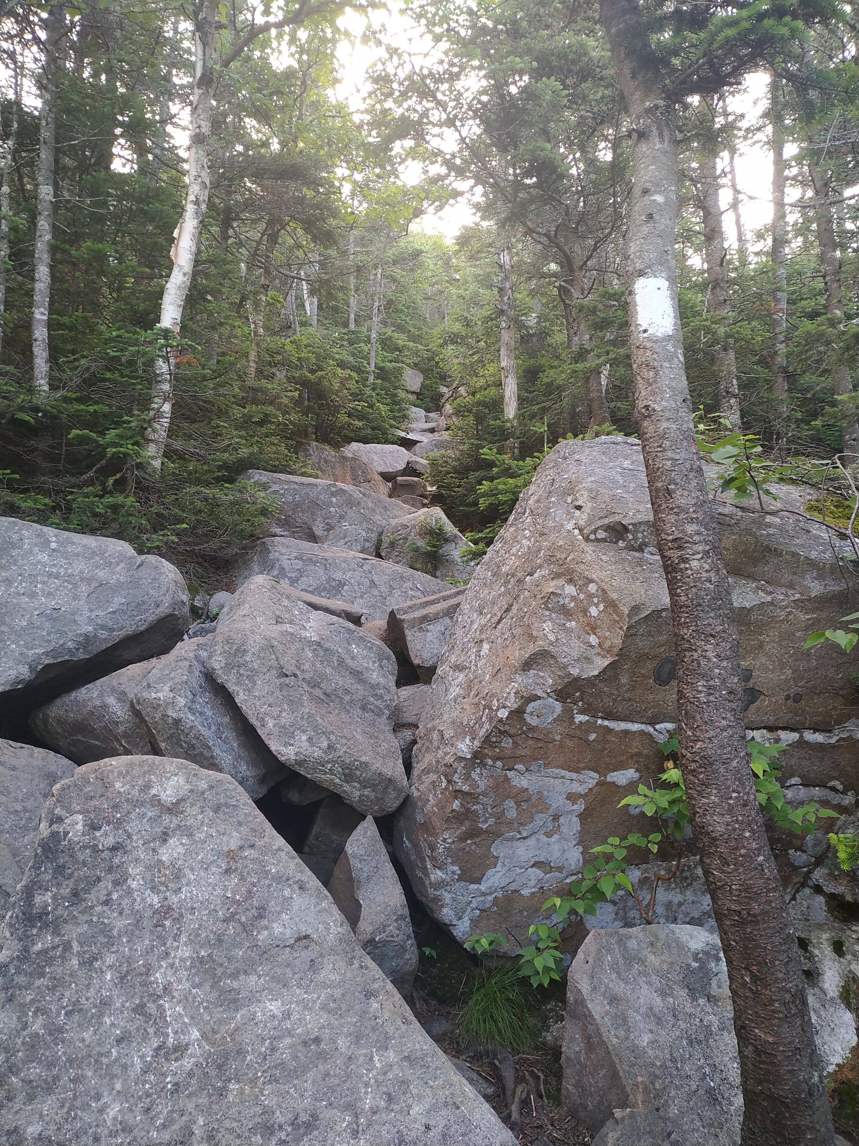 Und es ging sofort steil los. 1.100 Fuß in 0,7 Meilen, hoch auf den Gipfel des 4.902 Fuß hohen South Twin Mountain. Der Aufstieg war nicht schwer, aber die Steigung war schon ziemlich ordentlich. 😉