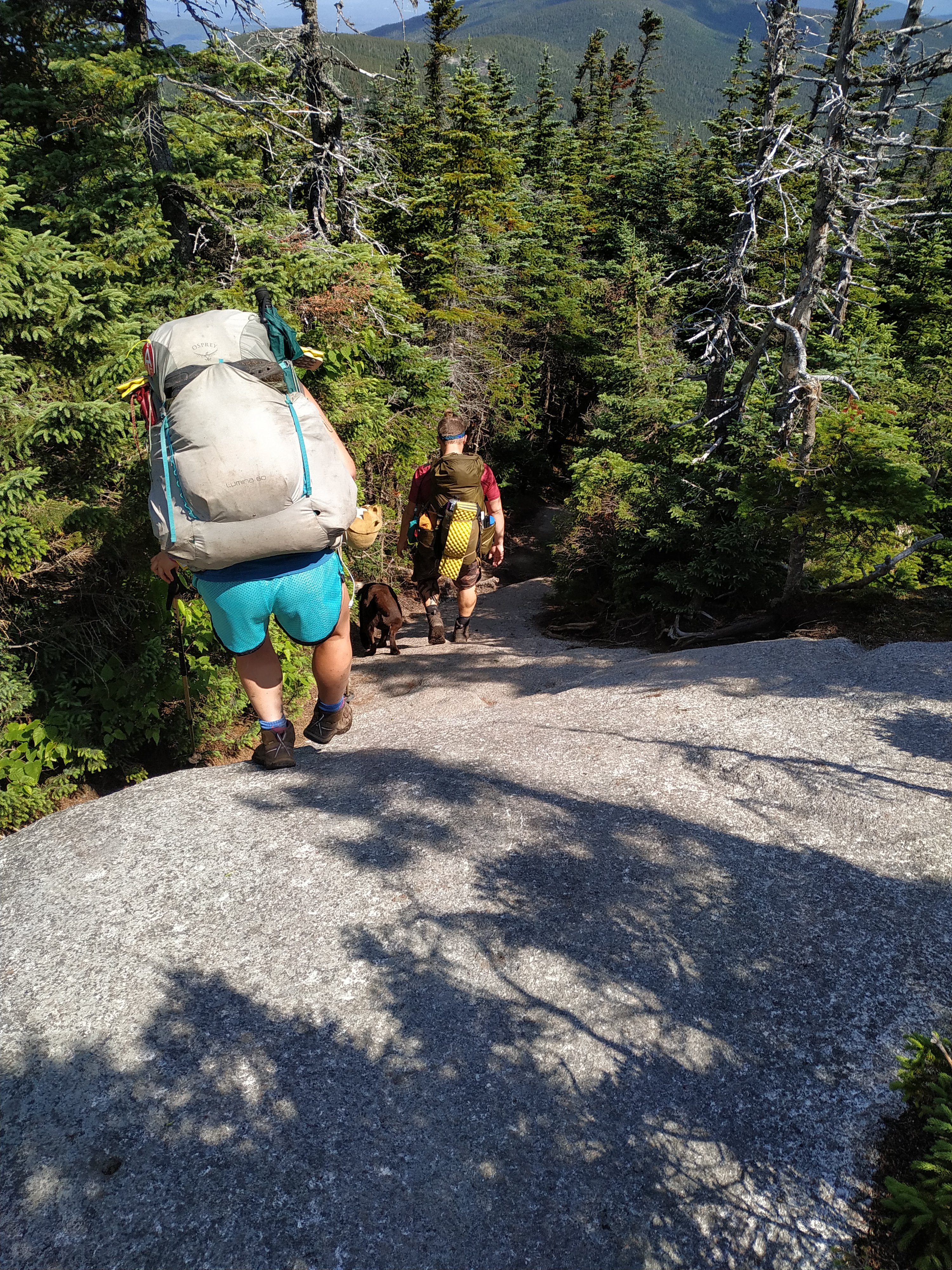 Beim Mittagessen haben wir alle zusammen beschlossen, das unser eigentliches Ziel, die Ethan Pond Campsite, zu nah ist. Daher haben wir unser Tagesziel um ungefähr fünf Meilen nach hinten zu verschieben. An den Webster Cliffs soll nämlich eine super schöne Stealth Campsite sein. Dafür musste aber ein langer Abstieg und ein zusätzlicher länger und steiler Aufstieg überwunden werden. Die meiste Zeit über war der Abstieg überraschend flach und angenehm.