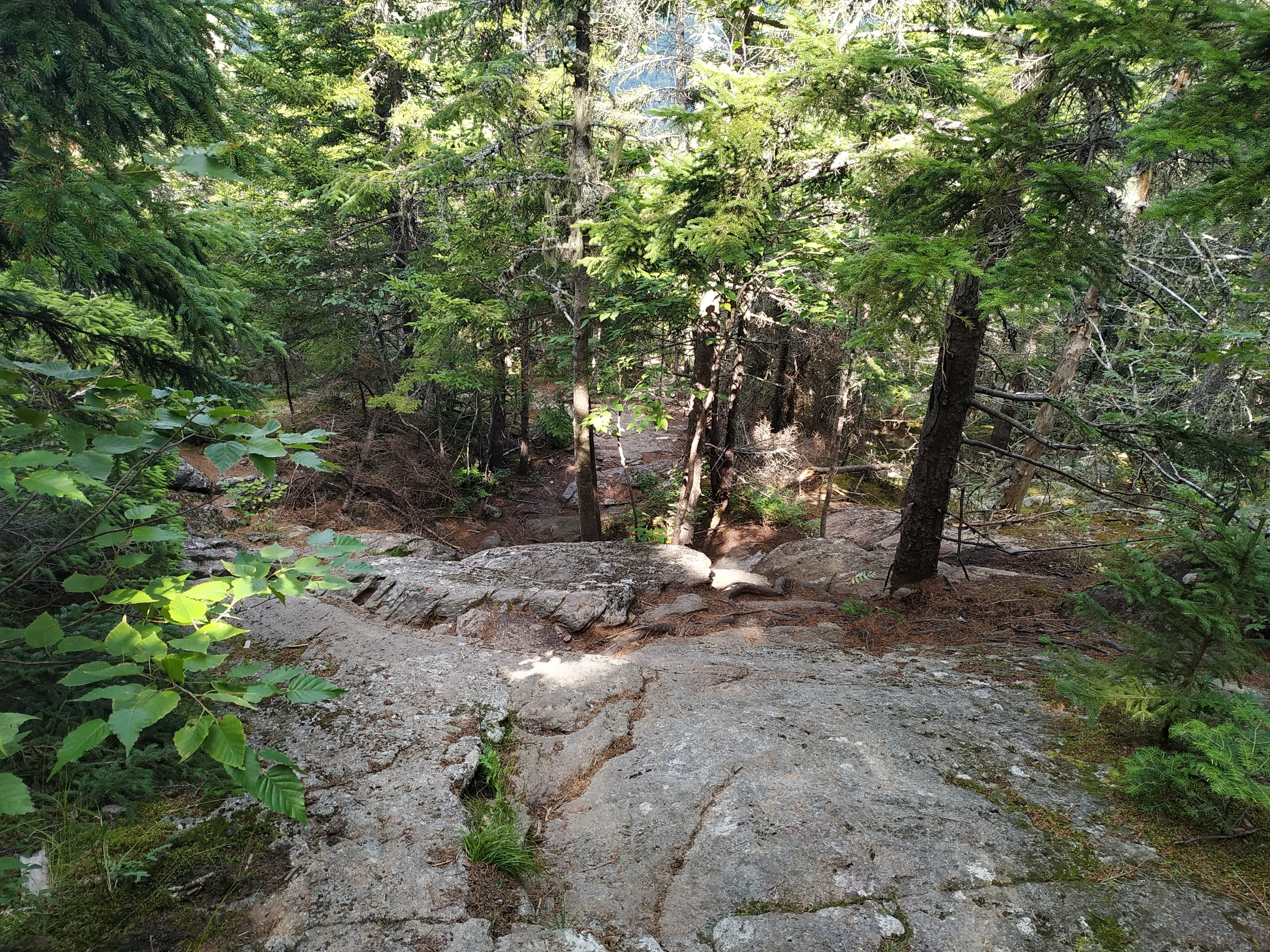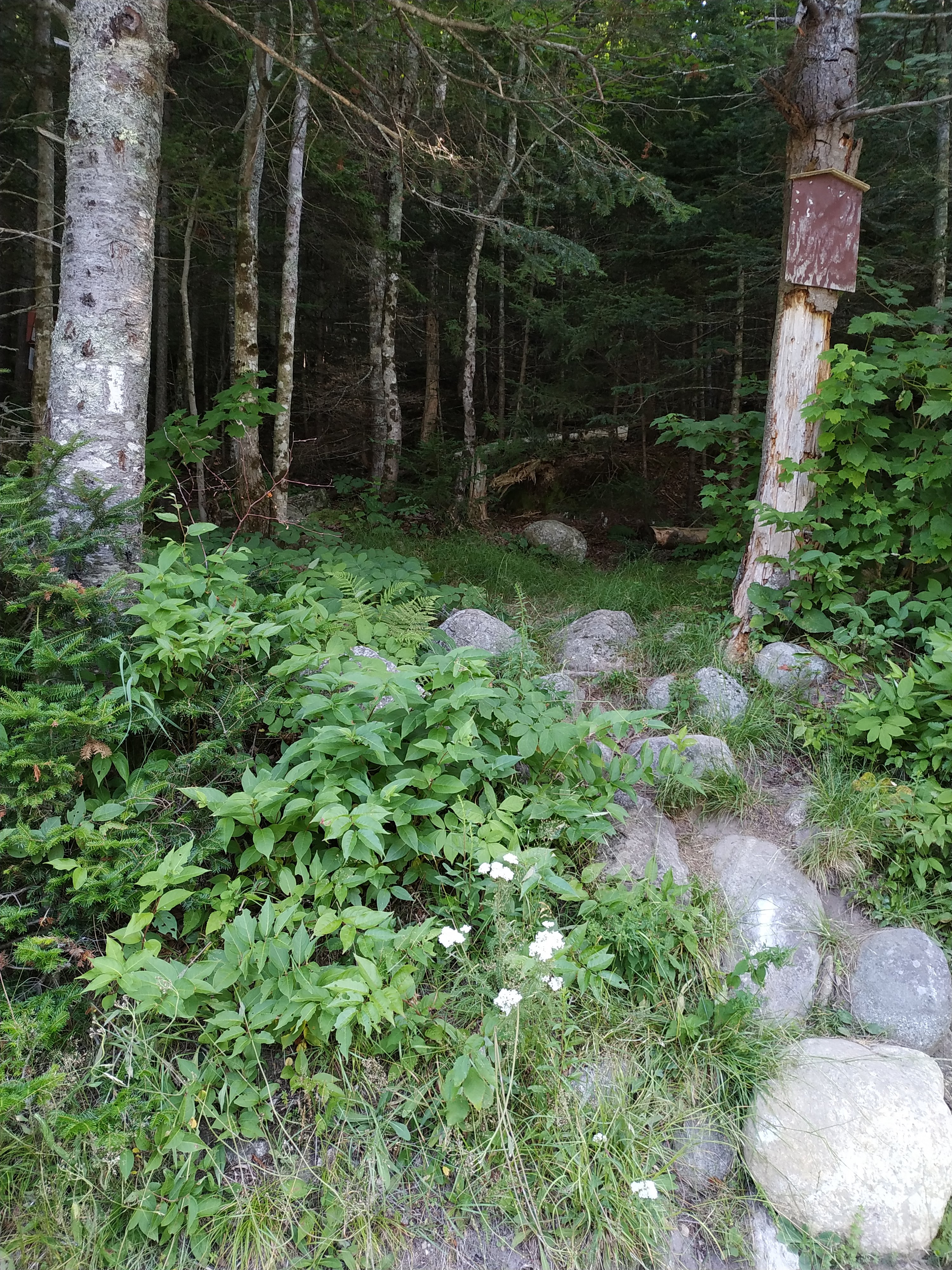 Und insgesamt war meine Laune heute schon viel besser. Die beiden entspannten Tage haben sowohl meinen Beinen als auch meiner Laune richtig gut getan. Und so konnten mir auch die bewaldeten Gipfel nichts ausmachen. Auch wenn es blöd ist, einen Berg hoch zu steigen und nicht einmal mit einer Aussicht belohnt zu werden. Aber auch bei Bemis Mountain hat sich der Ausblick wieder im Abstieg versteckt. Ein schöner Ort für eine Pause.