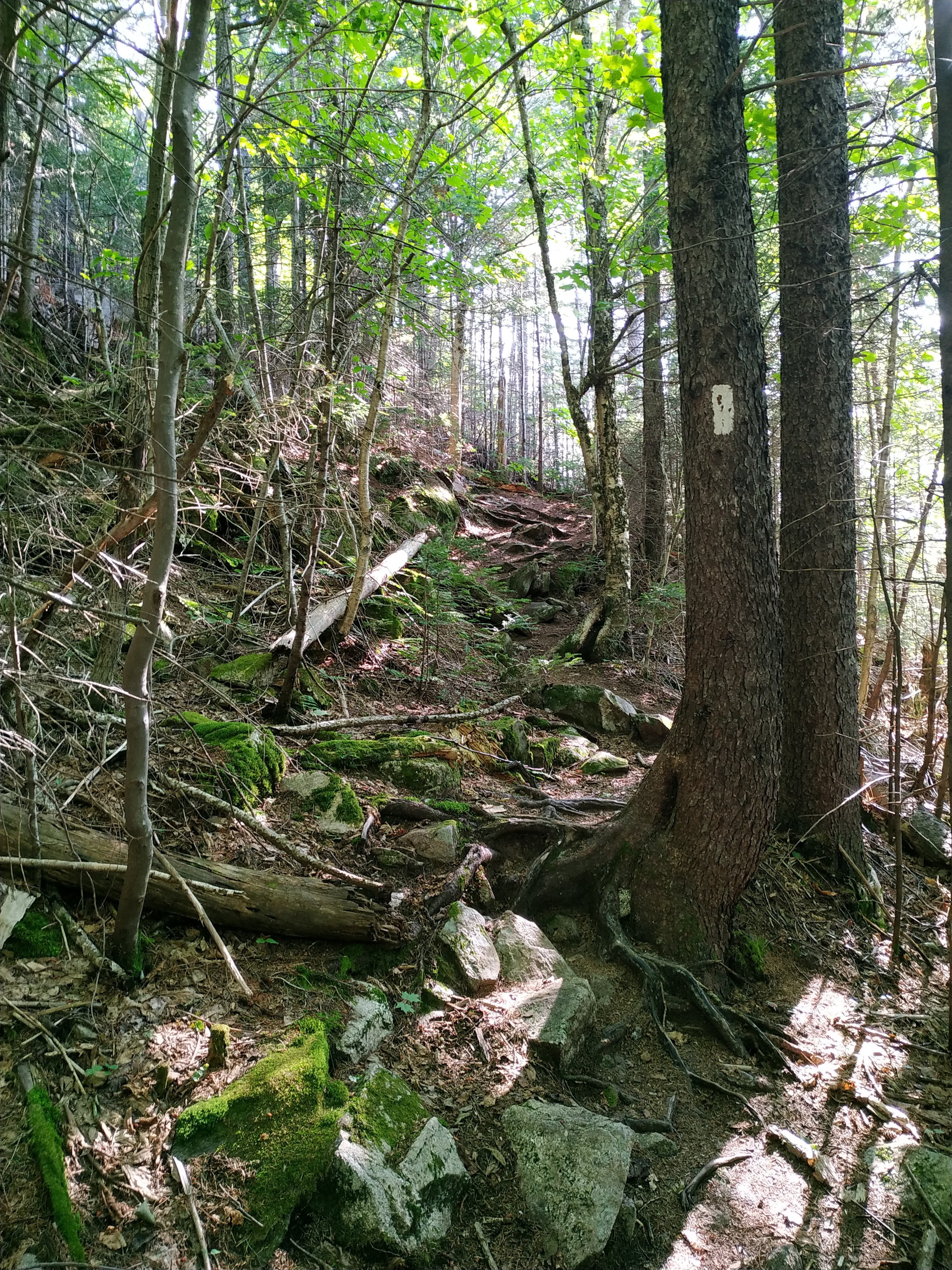 Und auch der nächste, etwas tiefer gelegene Gipfel von Bemis Mountain war wieder komplett bewaldet. Aber der Weg dorthin war wunderschön. Mit dem durch die Blätter fallenden Sonnenlicht, einer leichten Briese und dem Vogelgezwitscher war es ein wunderbarer Wandertag.