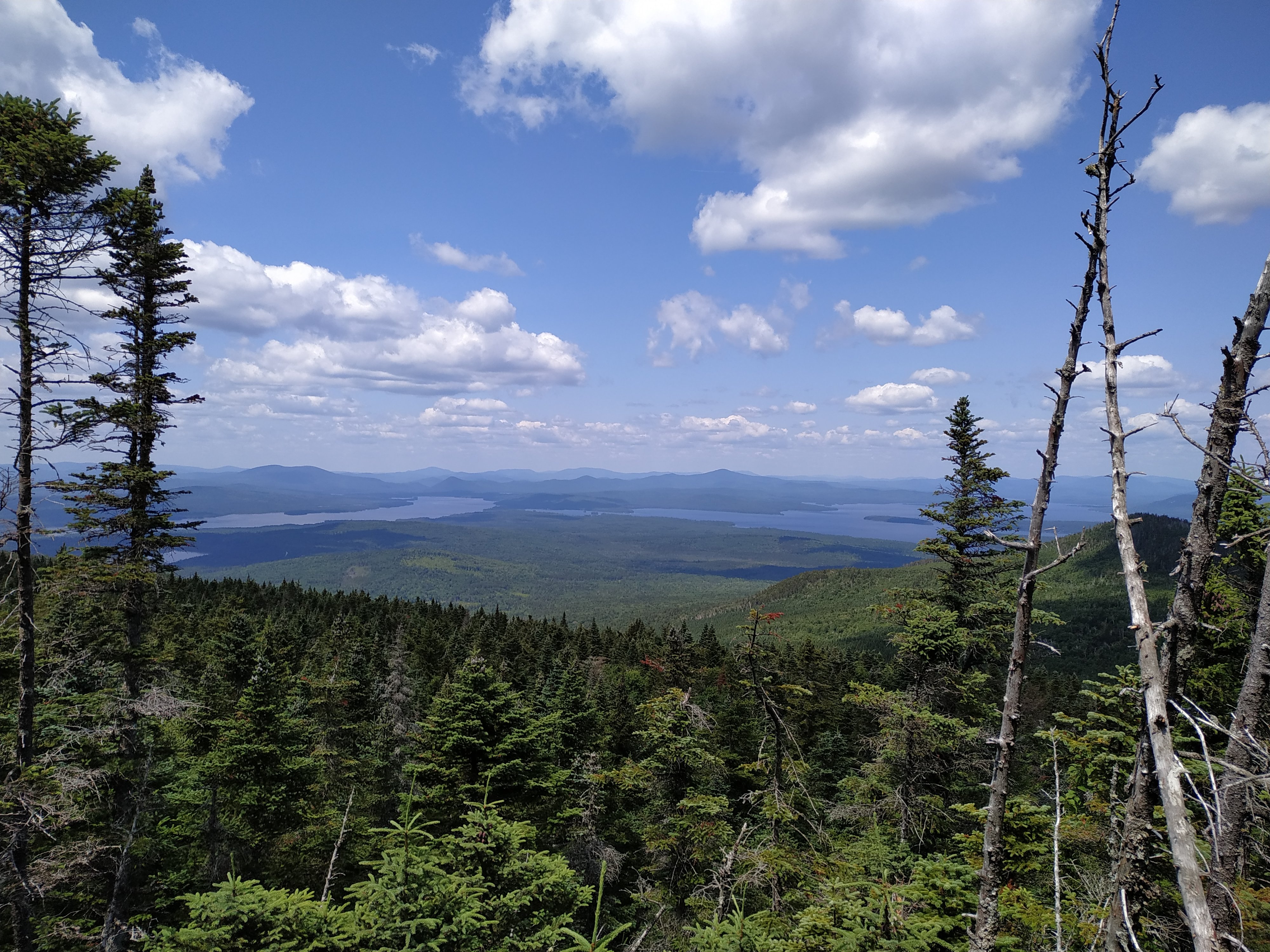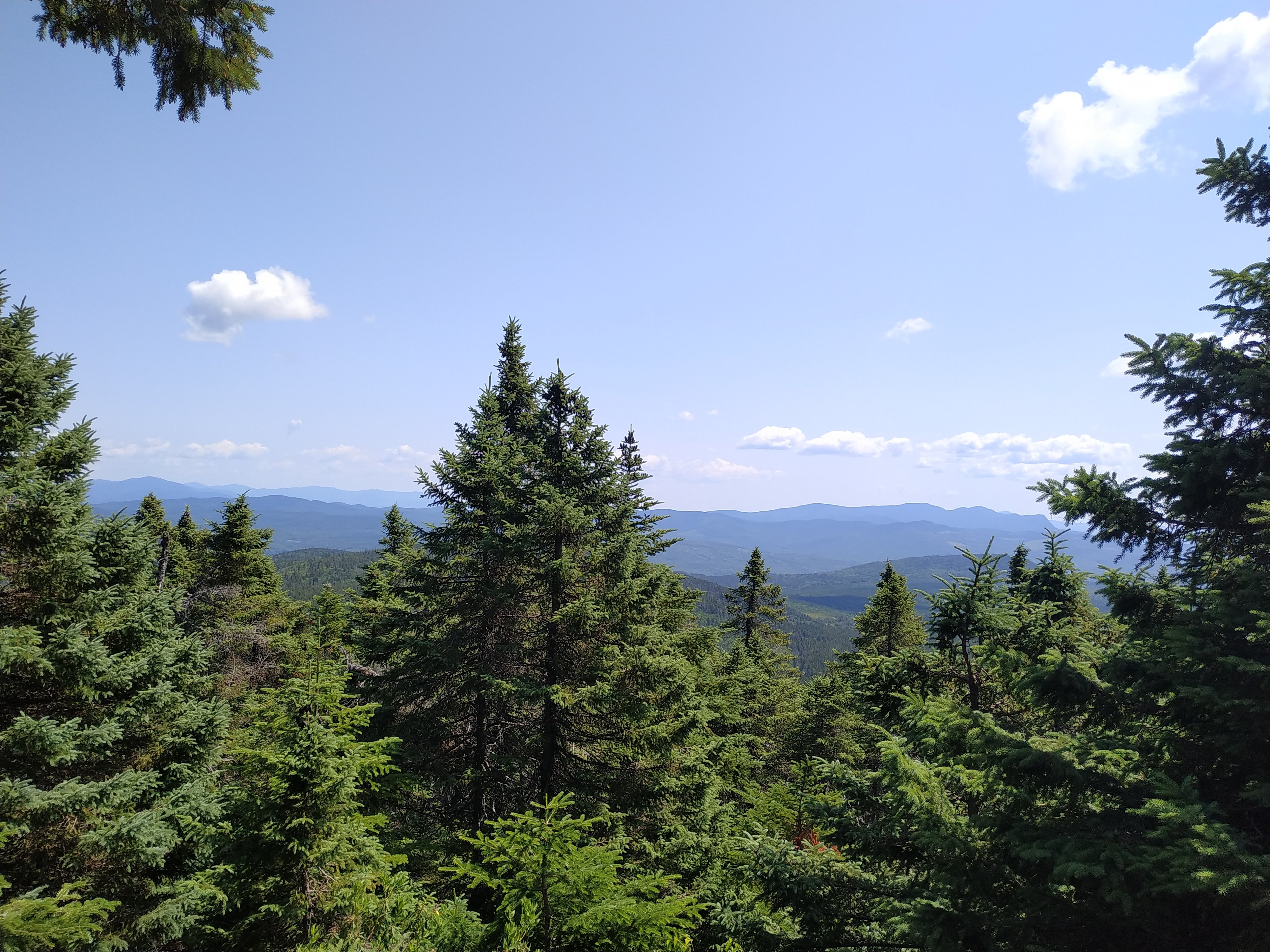 Der Gipfel selbst war unspektakulär. Vor allem deshalb, da er komplett bewaldet und die Aussicht daher gleich Null war. Zwei Meilen später sah das dann aber anders aus. Hier stand eine kleine Bank und die Aussicht war sehr schön.