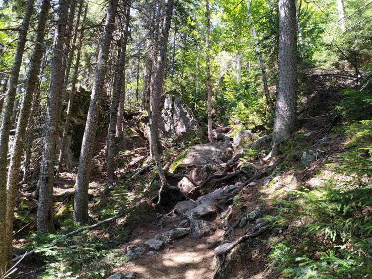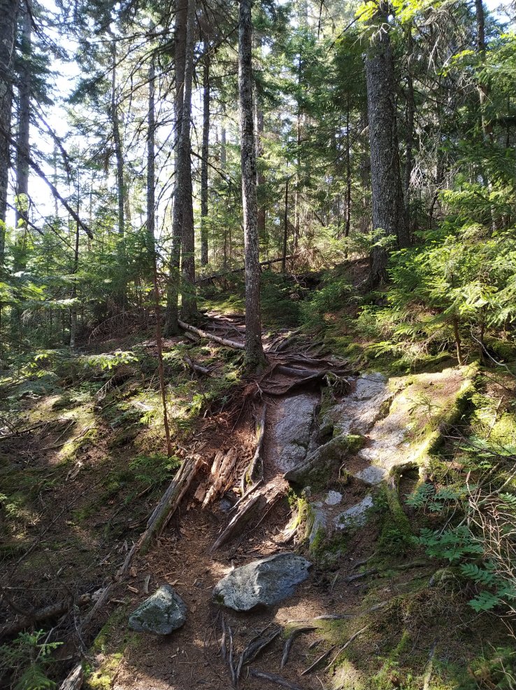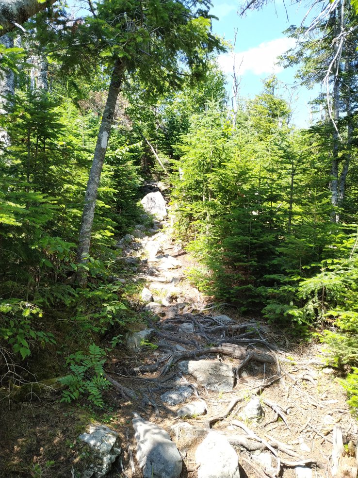 Die anschließenden 0,7 Meilen auf den westlichen Gipfel von Bigelow Mountain waren auch überraschend einfach. Zumindest in Maine Massstäben.