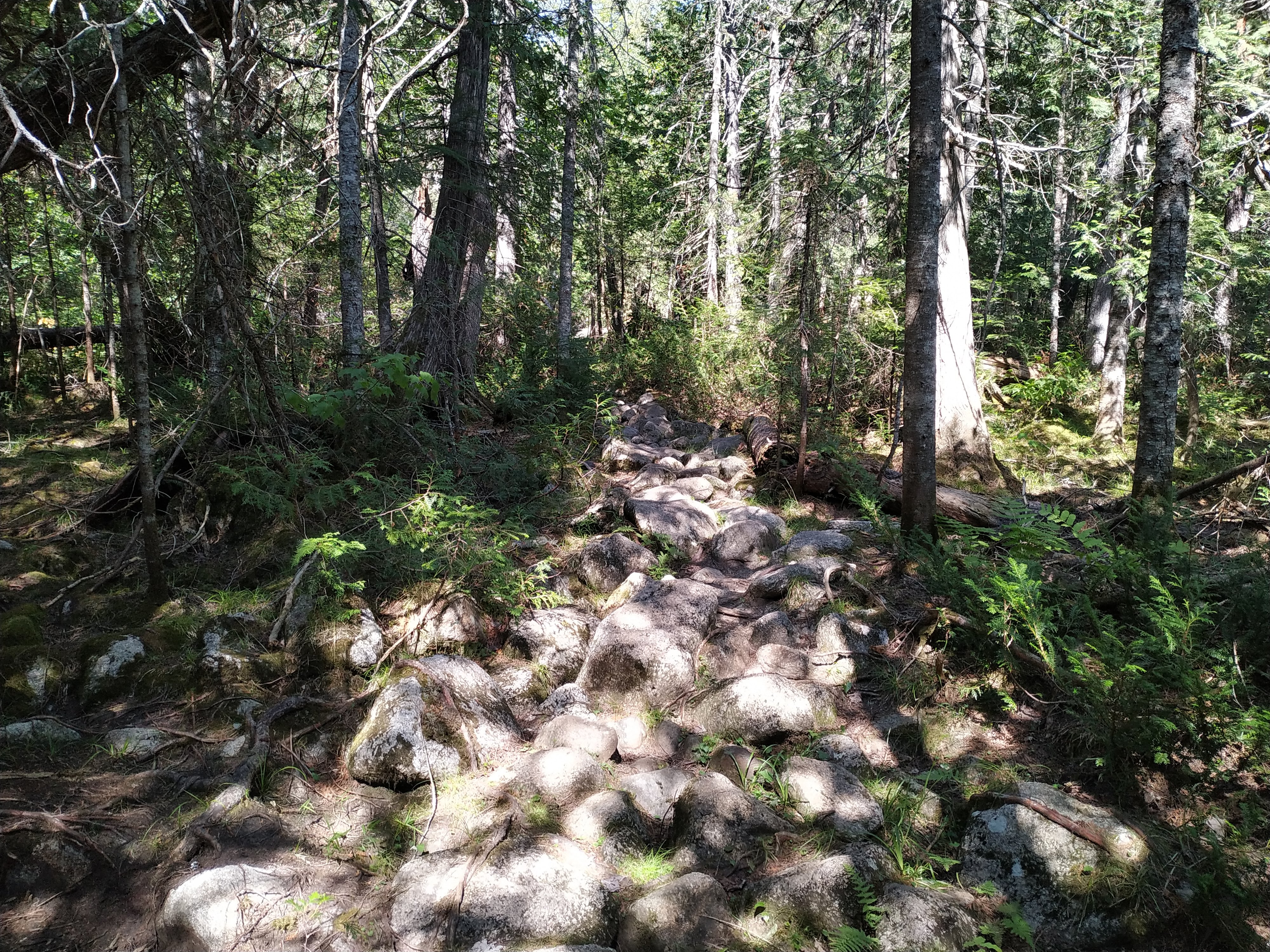 Von dort aus waren noch etwas über fünf Meilen bis zum Shelter über. Und die haben wir alle in knapp zwei Stunden geschafft. Die meiste Zeit war der Trail dabei wunderbar entspannt, nur ganz selten hat er uns mit Wurzeln, Steinen oder umgestürzten Bäumen geärgert.