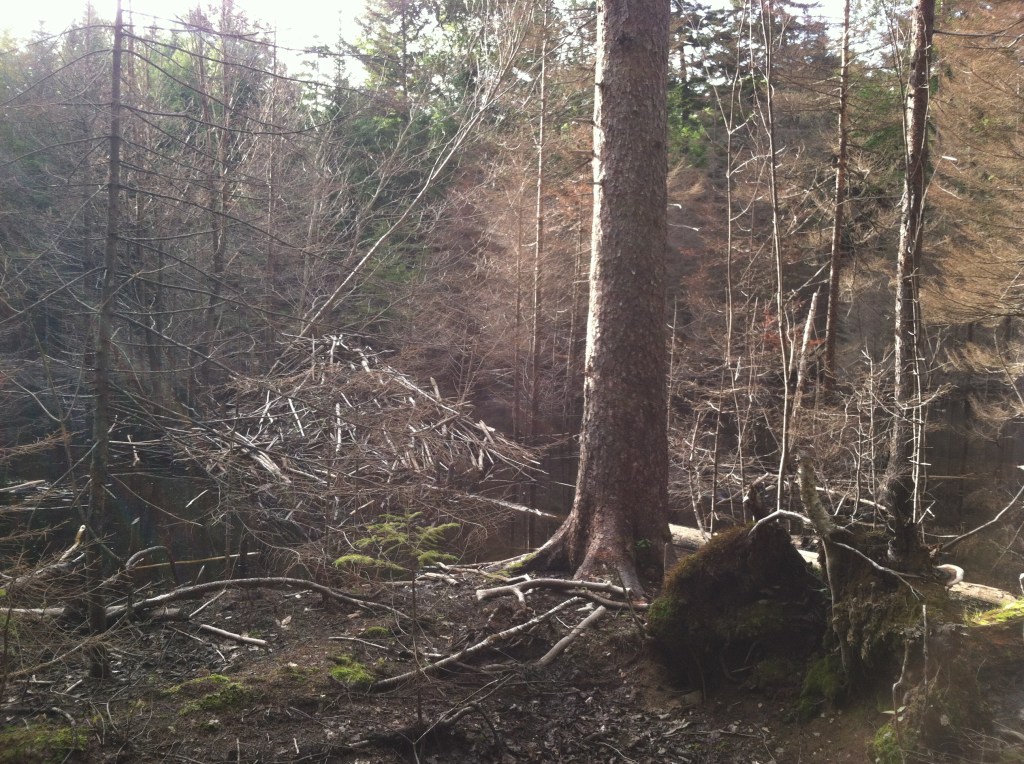 Ein Highlight gab es zwischendrin dann aber doch noch: ein Bibersee mit einer großen Burg in der Mitte. Und hier habe ich auch meinen ersten Biber gesehen, wie er lustig in seinem See geschwommen ist und an dem ein oder anderen Stamm geknabbert hat. 😀