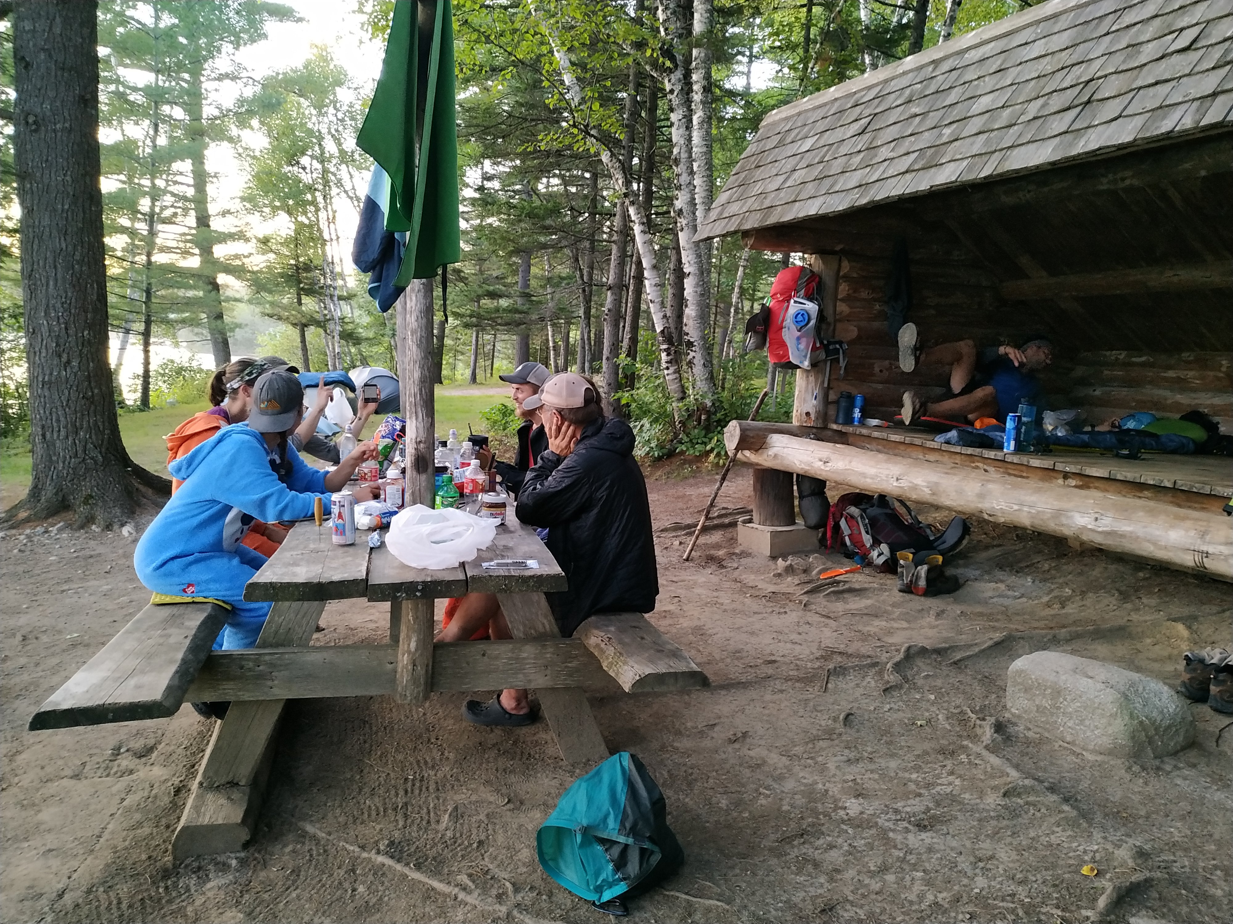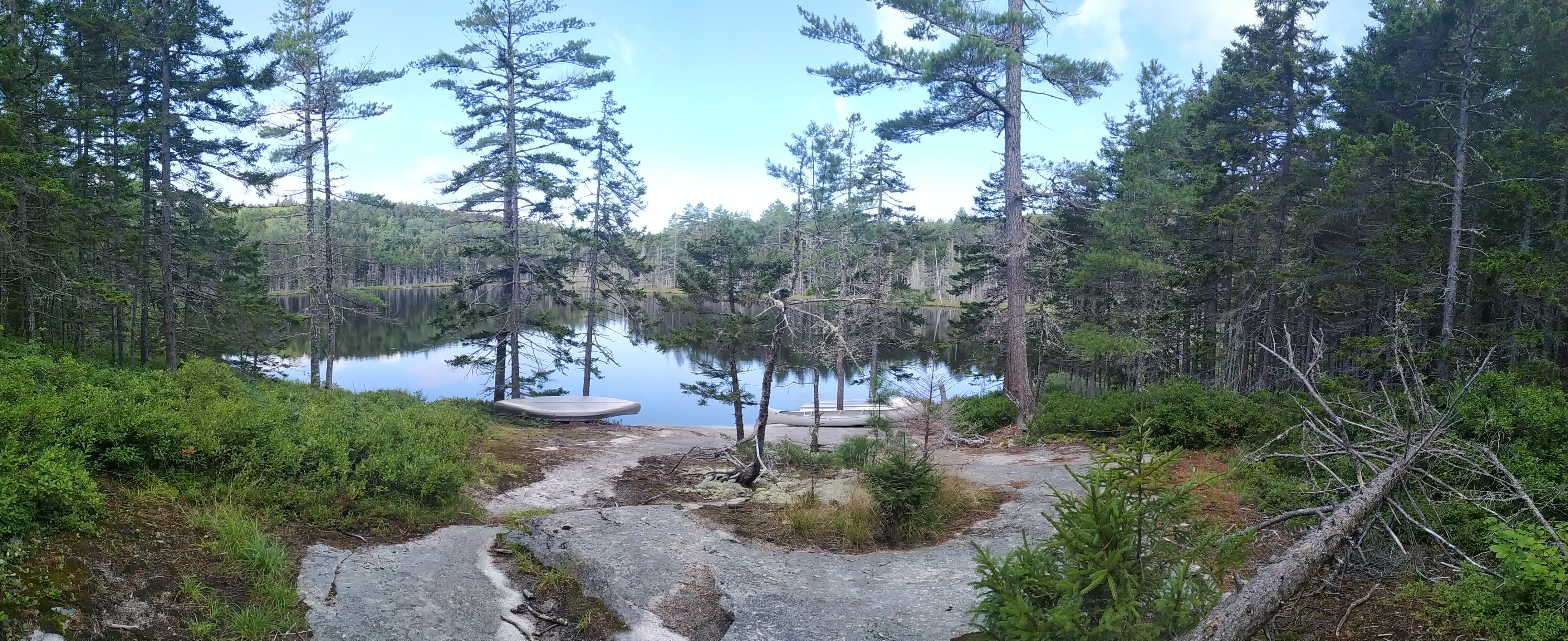 Die Rainbow Ledges waren dann von der Optik her alpin. Sehr schön mit dem Granit, den Pinienbäumen und den Blaubeeren. An unserem Pausenplatz war von Katahdin aber nichts zu sehen. Wir haben schon gewitzelt, das wir ihn gar nicht sehen sondern morgen „nur“ drauf stehen.