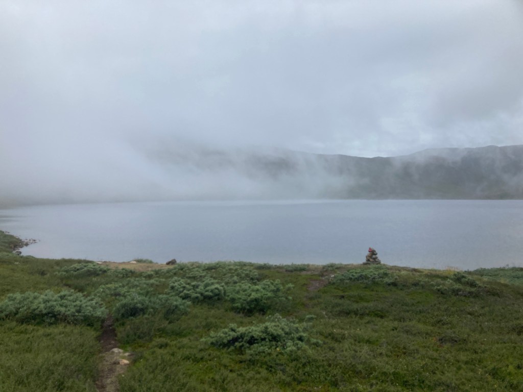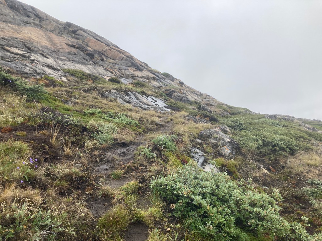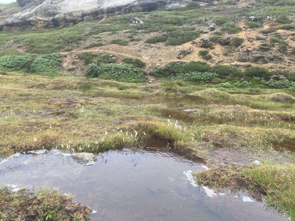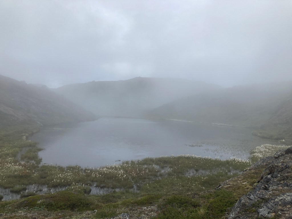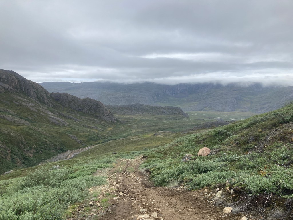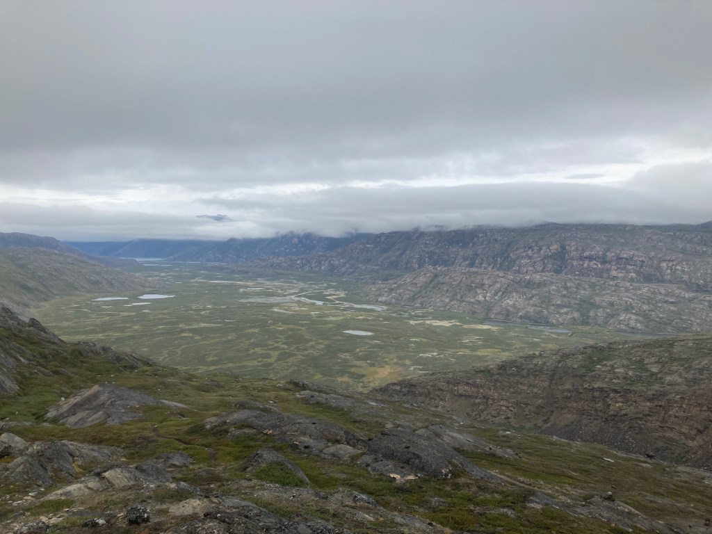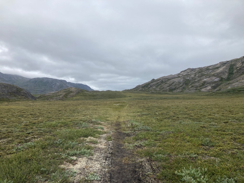 Eine Sache lag mir heute allerdings auf der Seele: jetzt ging es nämlich abwärts und unten im Tal erwartete mich der Itinneq: der breiteste, tiefste und schnellste Fluss den ich forden muss. Und das Tal rund um ist natürlich auch Marschland und ziemlich nass. Bei den Temperaturen hat mir das schon Sorgen gemacht.