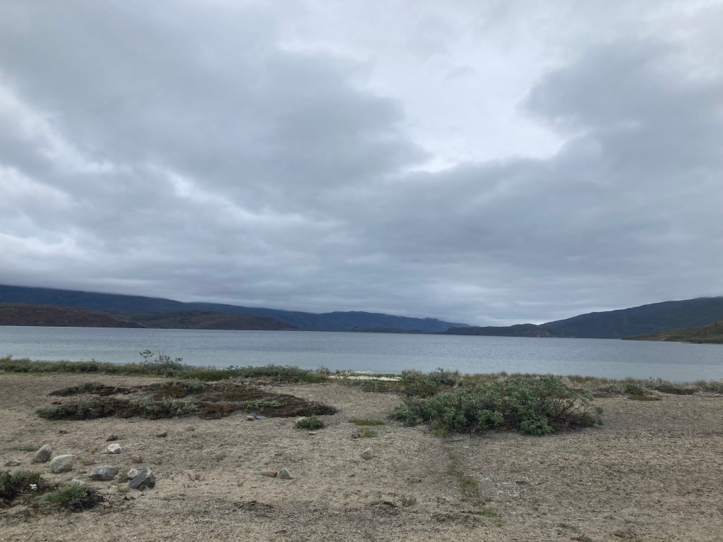 Auf dem anderen Ufer habe ich mich abgetrocknet und bin weiter gezogen. Vorher habe ich allerdings noch zwei Inuit Jäger mit Boot gesehen die ein erlegtes Rentier dabei hatten.