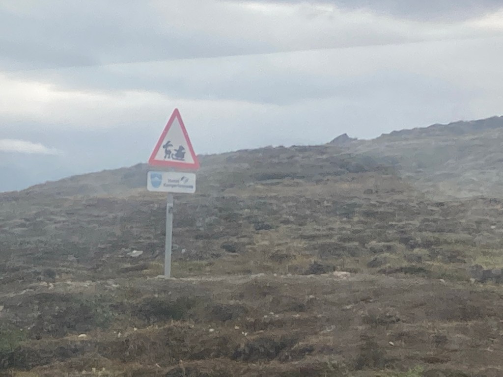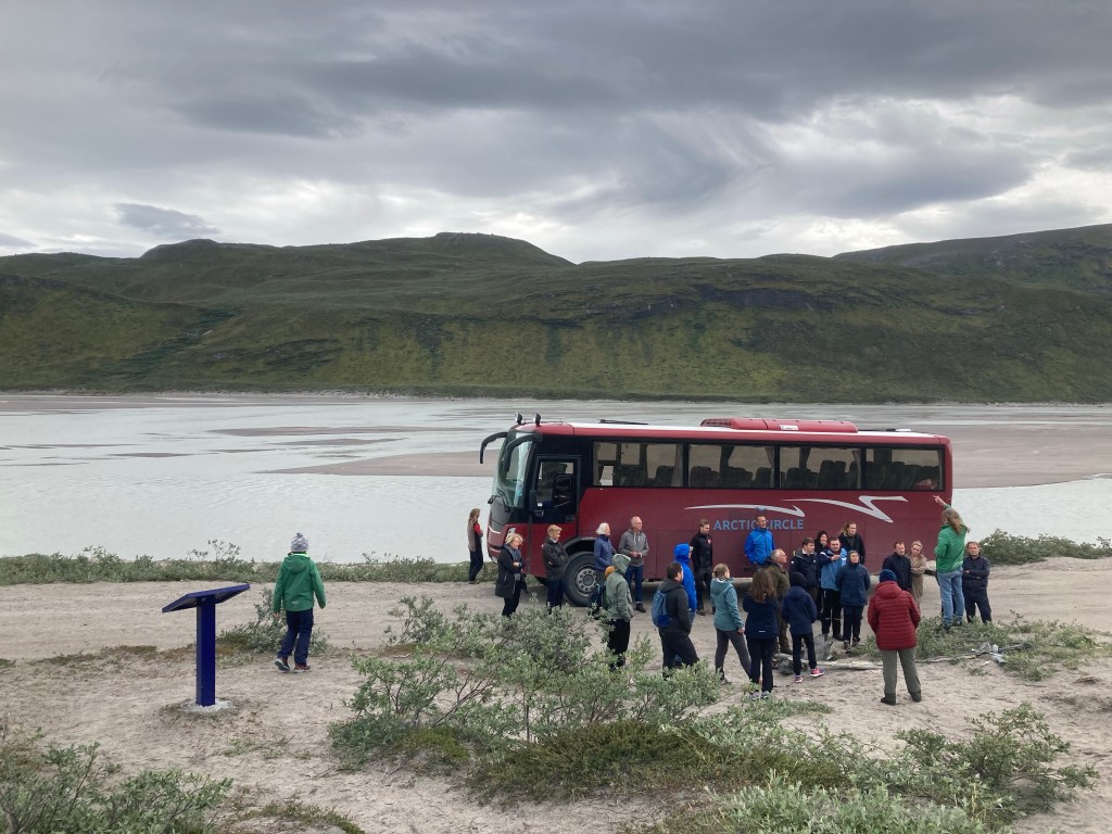 Um 13h kam der Bus von Albatros Arctic Circle um ca. 13 andere und mich zum Inlandeis zu fahren. Wäre ja schändlich in Grönland zu sein und das auszulassen! Dorthin kommt man über die längste Straße Grönlands (25km lang), die VW damals als Winterteststrecke gebaut hat.