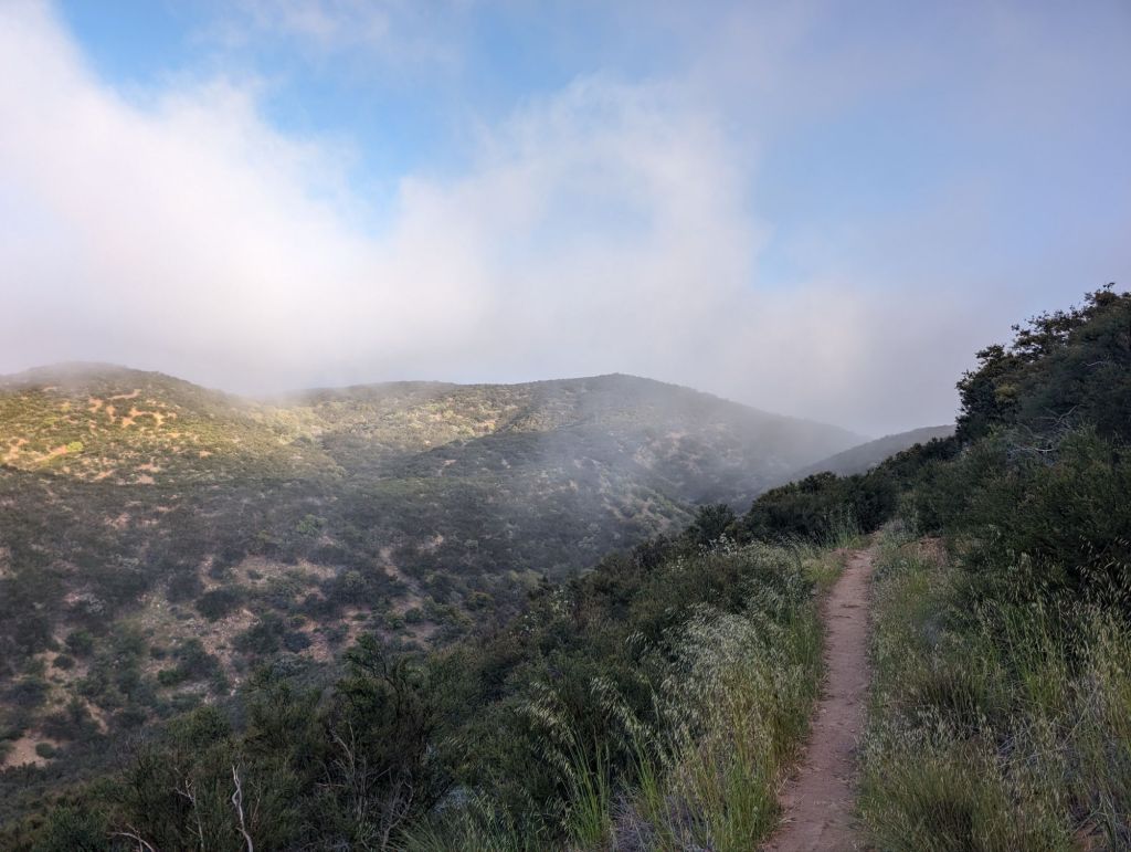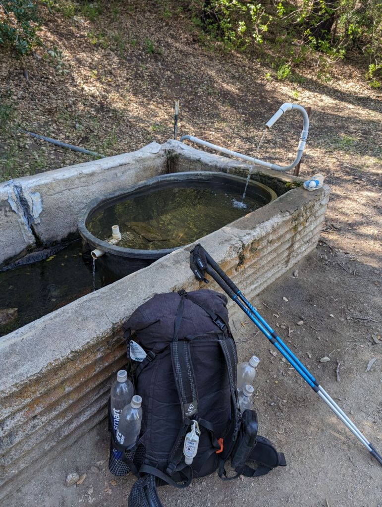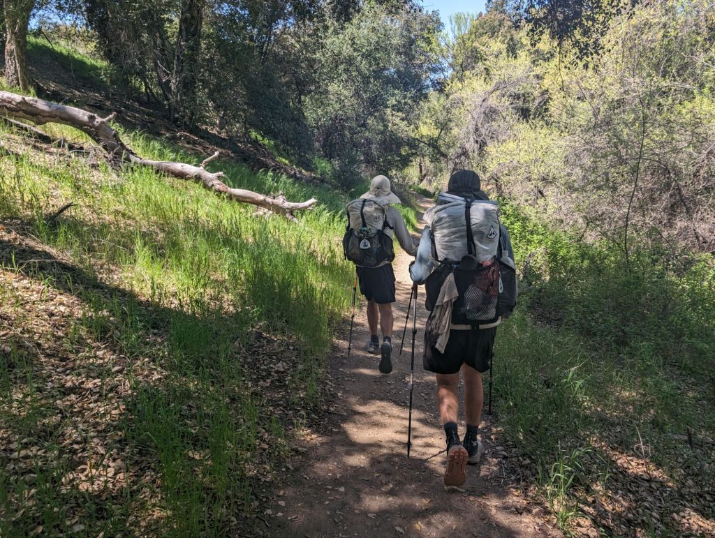 Weiter ging’s, sanft bergab bei immer noch sehr schönen Temperaturen. Am Ende des Abstiegs lag eine sehr schöne Campsite mit Wasser. An der hatten wir gestern noch überlegt. Das hätte aus unserem Tag gestern aber einen 24 Meilen Tag gemacht, und das war uns zu viel. Aber wir hätten sicher alle besser geschlafen.