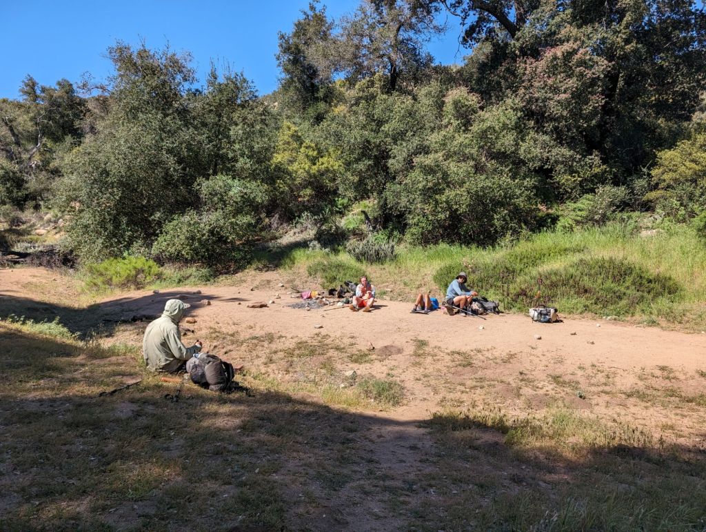 Nur wenig später habe ich mit Wheezer, Alistair, Oats und Joust eine Frühstücks- und Trockenpause gemacht. Außerdem haben wir uns alle irgendwie angewöhnt, erst ein oder zwei Stunden zu wandern und dann erst die Zähne zu putzen. Das kam bei diesem Stopp auch dran.