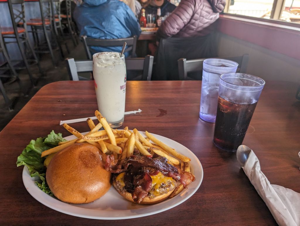Gerade als ich meinen Burger auf hatte, da kam Oats. Er und Twins waren hinter mir. Da konnte ich sie ja nicht einholen. 😅