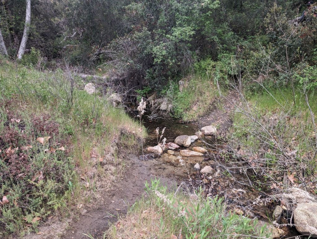 Die ersten vier Meilen verlief der Trail am Aqua Caliente Creek entlang. Stein-Sprung-Überquerungen inklusive.