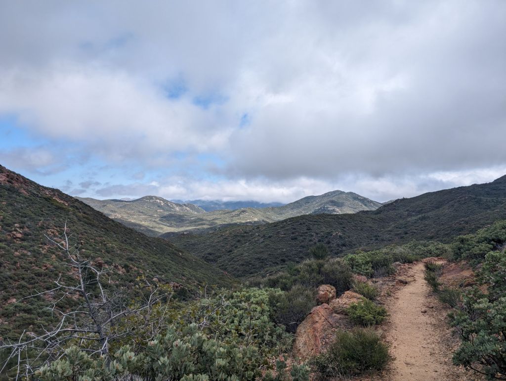 Nachdem das hoch geschafft war, kam das ab. Und der Trail war in keinem besonders guten Zustand. Überwachsen, umgefallene Bäume oder auch teilweise ausgespülte Abschnitte. Alles nicht tragisch, aber ich war doch froh, als das Stück geschafft war.