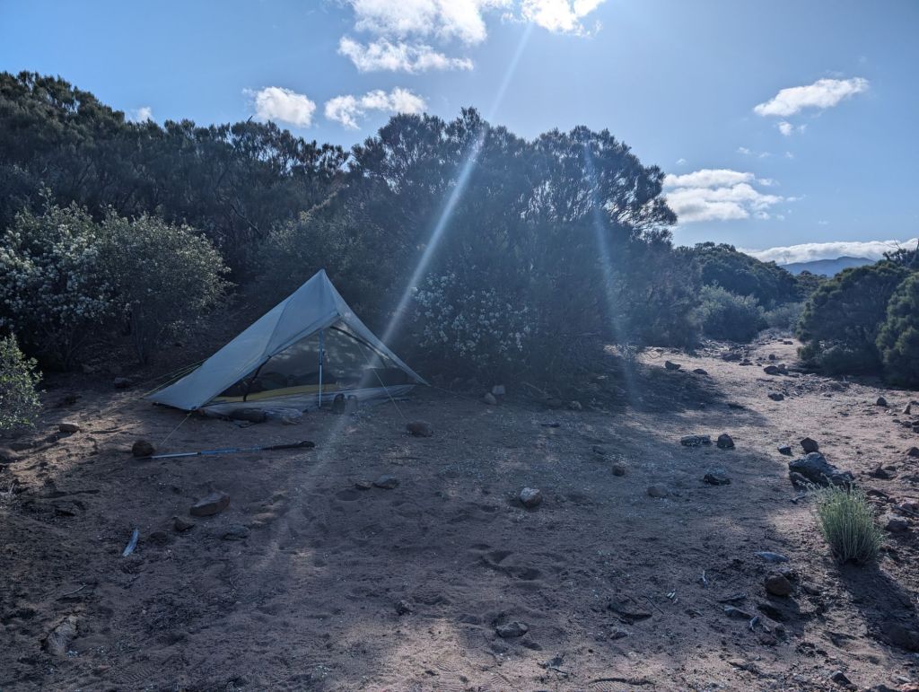Mein ursprüngliches Ziel war eigentlich eine Campsite bei 131,5. Die war nur leider schon voll. Der einzige schöne Fleck war direkt über einem Ameisennest. Das wollte ich dann doch nicht.