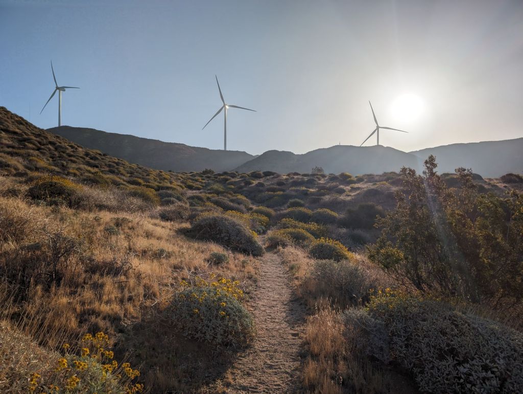 Dafür das ich neben einer Windfarm geschlafen habe war es gar nicht so windig. Aber es war warm. Und ich habe ganz gut geschlafen. Aufgestanden bin ich um 5:50, gestartet um 6:50.