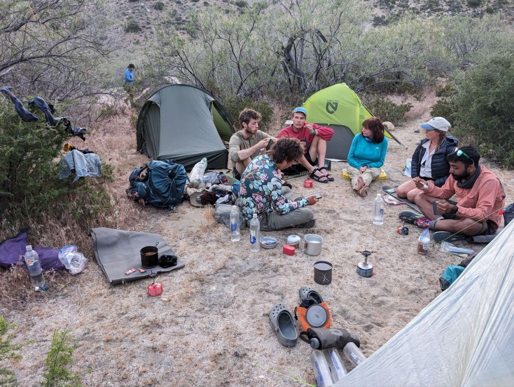 Am Camp sind wir gegen 17:45 angekommen. Glücklich das wir unsere Zelte aufbauen und Essen kochen konnten. Ein Problem ist allerdings: eine Gruppe Hiker hat sich, anscheinend an dem Wasser hier den Noro-Videos eingefangen. Also kommt zum filtern jetzt noch abkochen oder mit Chemikalien behandeln dazu.