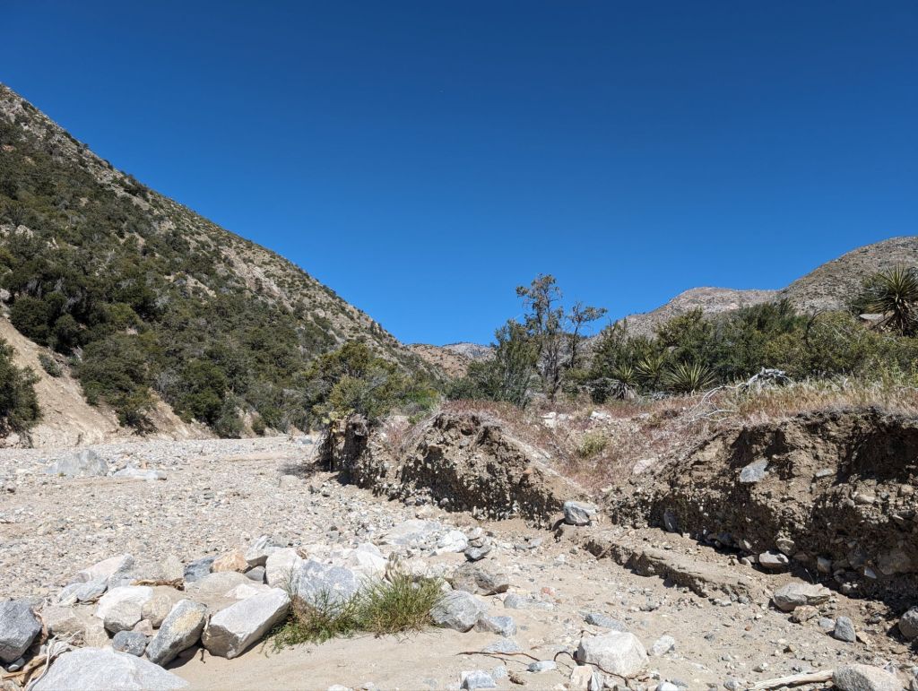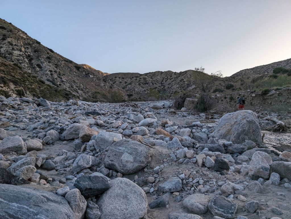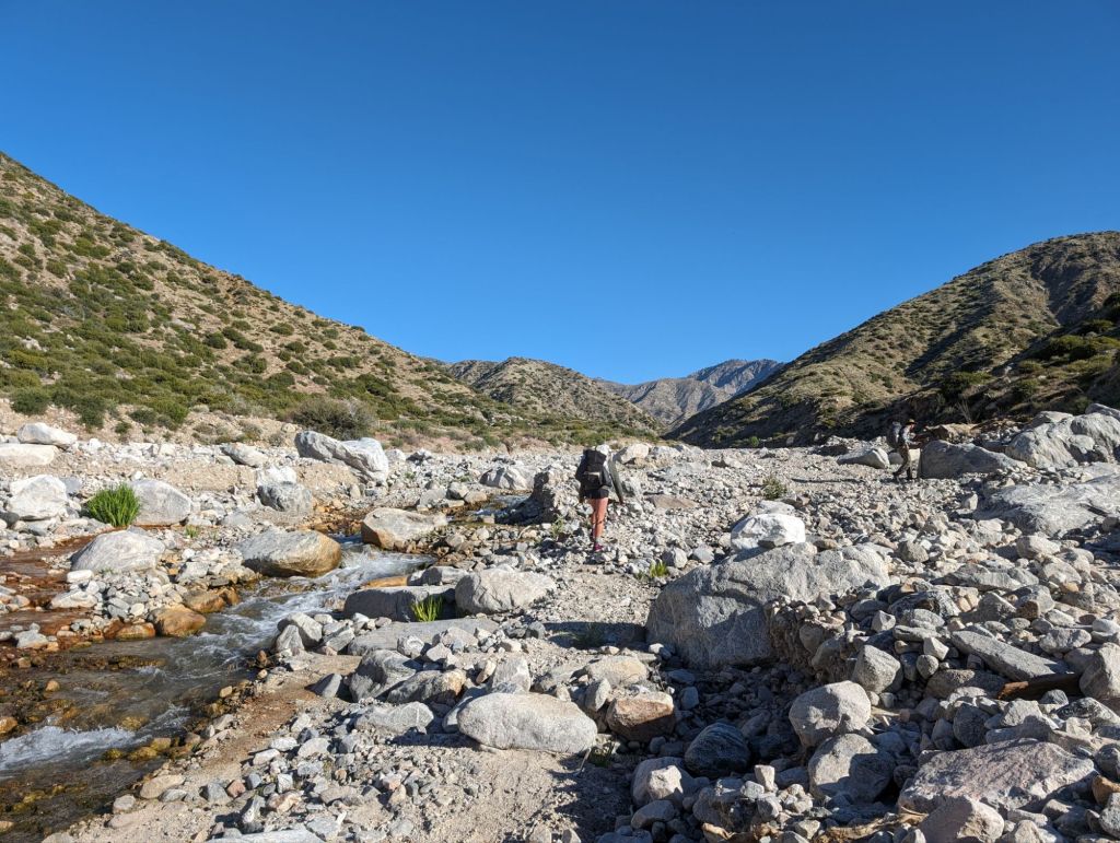 Die ersten 6 Meilen ging es, zu Beginn noch im Schatten, durch das Flussbett. Und das war nicht weniger ermüdend als gestern. Meine Socken sind zwar über Nacht getrocknet, meine Schuhe waren aber noch nass. Was am Ende auch egal war, da ich ziemlich schnell das erste Mal wieder durch den Bach gegangen bin.