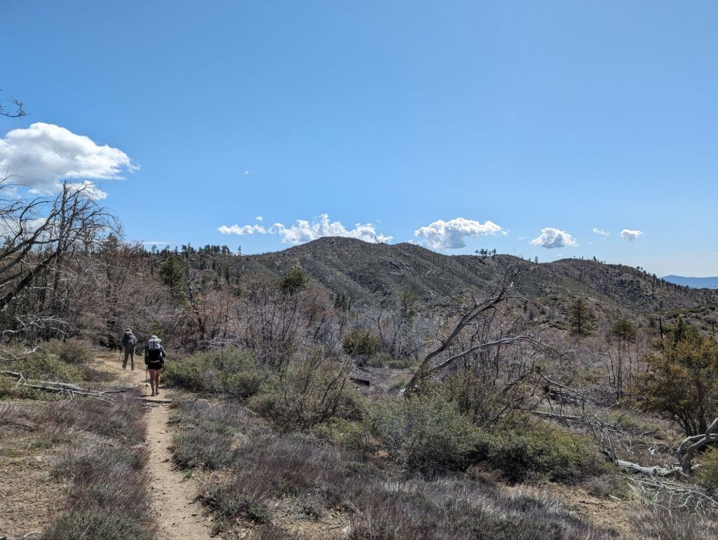 Turmeric, Twins und ich werden 6,5 Meilen weiter wandern. Dort ist ein Lagerplatz direkt am Wasser. Oats und Moon geben uns bis morgen früh 8h per Garmin Inreach Nachricht (das ist die Satelliten Notfall Kommunikation, die fast alle dabei haben) Bescheid, ob sie morgen nach kommen oder in die Stadt gehen. Dann schauen wir weiter.