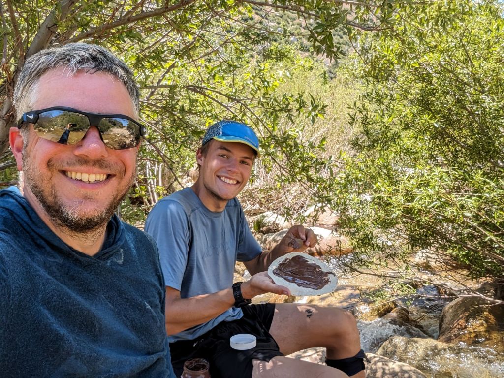 Und nur wenig später waren wir da. Dave, oder By the Way, ein Thru-Hiker von 2018, hat die Magic veranstaltet. Scharfe Würstchen in Hotdog Brötchen und Sodas.