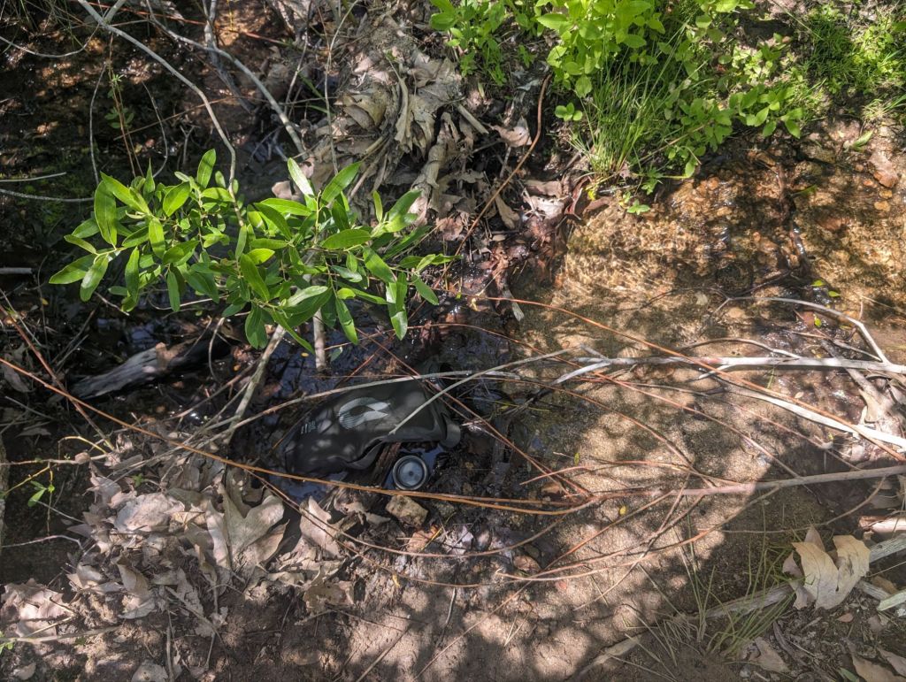 Da kam der kleine Bachlauf wie gerufen. Kühles, gut fließendes Wasser. Twins und Turmeric haben mir noch zugerufen, das man gut über die Steine mit trockenen Füßen rüber kommen kann. Da hatte ich meine Schuhe aber schon aus und habe sie im Wasser abgekühlt. Das tat gut! Kurz danach kam Oats. Wir haben uns dann einfach in der Mitte des Bachs auf einen Stein gesetzt und haben da im Schatten Pause gemacht.
