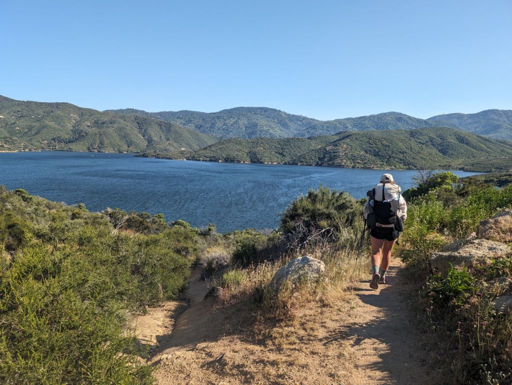 Nach der Straße kam zwar ein kleiner Anstieg, der war es aber wert. Danach kam nämlich Silverwood Lake in Sicht. Ein wirklich schöner See. Aber da lag so viel Müll herum!