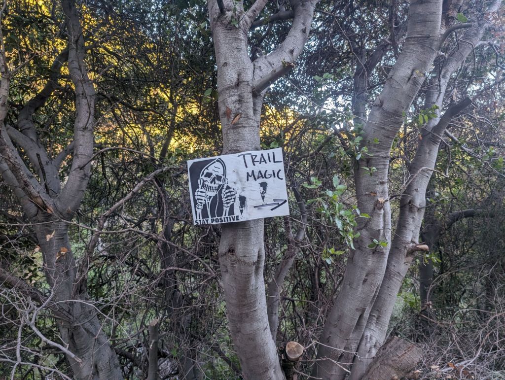 Da es aber auch schon ziemlich spät war, haben wir angefangen daran zu zweifeln, dass die Trail Magic noch da ist. Darauf sagte Turmeric nur „stay positive“. Nach der nächsten Kurve hing dann dieses Schild: