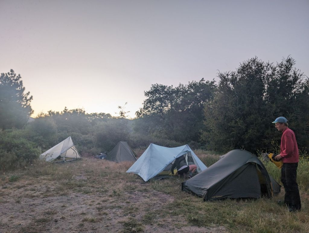 Angekommen haben wir schnell unsere Zelte aufgebaut und dann gekocht. Und da hat sich Moon gemeldet, der den ganzen Tag weit zurück war. Wir haben Ihn zu unserem Campground gelotst und haben uns sehr gefreut, wieder vereint zu sein.