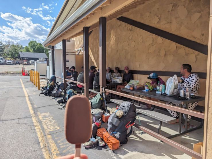 Moon hatte die gleichen Probleme mit seinem Handyvertrag wie ich auch. Also wären wir nach dem Essen erst an der Tankstelle und dann wieder im Supermarkt um zuschauen, ob es da Prepaid Karten gibt. Die gab es nicht. Aber Eis. Und Trail Magic in Form von Mandarinen.