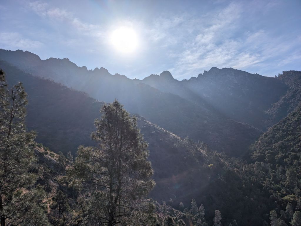 Oben angekommen gab es eine besondere Belohnung: einen Ausblick auf Mount Whitney und die damit verbundene Gebirgskette in der Sierra.