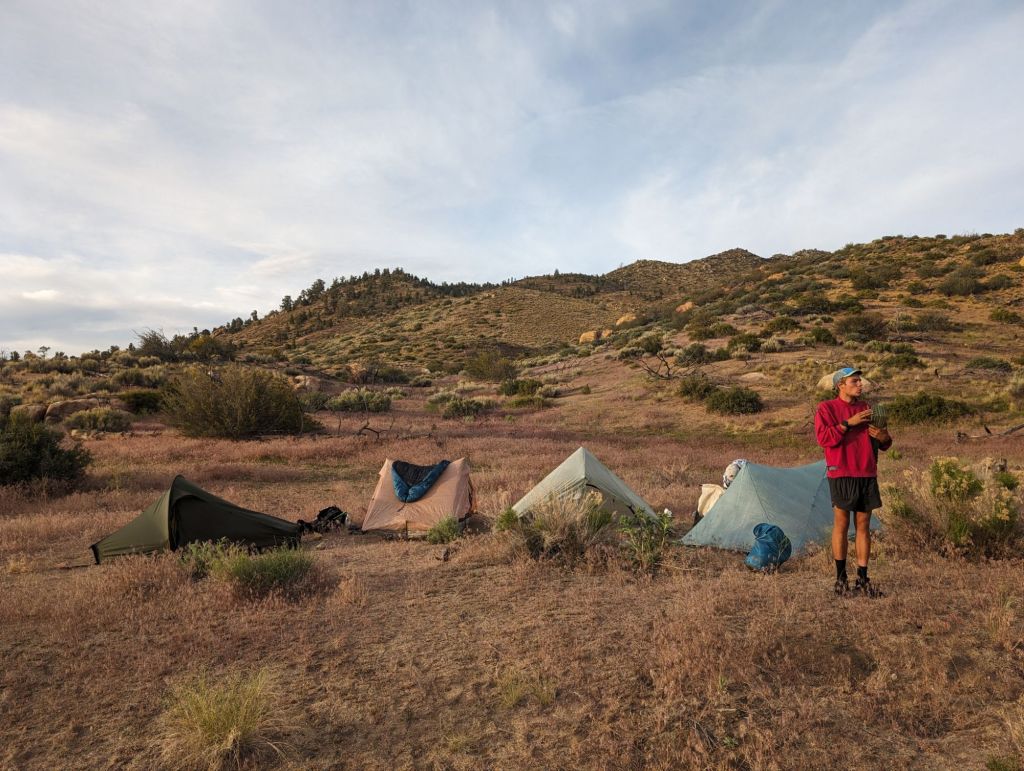 Kurz vor 19h war ich am Ziel. Und nach 41km und 1.551 Höhenmetern auch ziemlich froh darüber. Und das es am Camp wieder Wasser gibt. Mein Lagerplatz ist heute zwar ziemlich ungeschützt, auf der anderen Seite aber auch ziemlich schön.