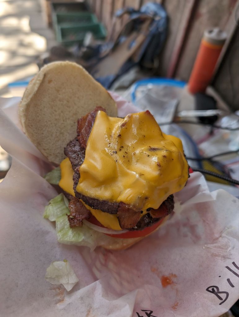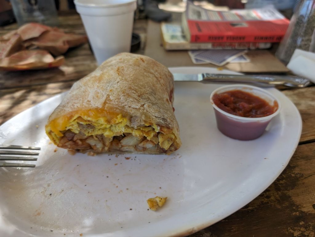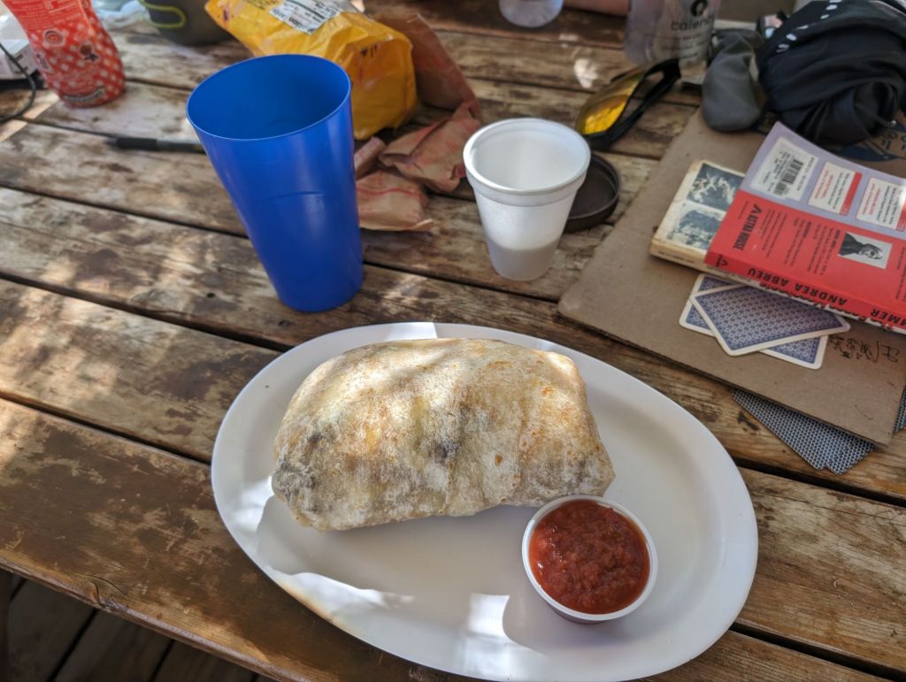 Natürlich konnten wir nicht los wandern, ohne vorher noch Abendessen gehabt zu haben. Der Burger war gut, auch wenn etwas Sauce gefehlt hat.