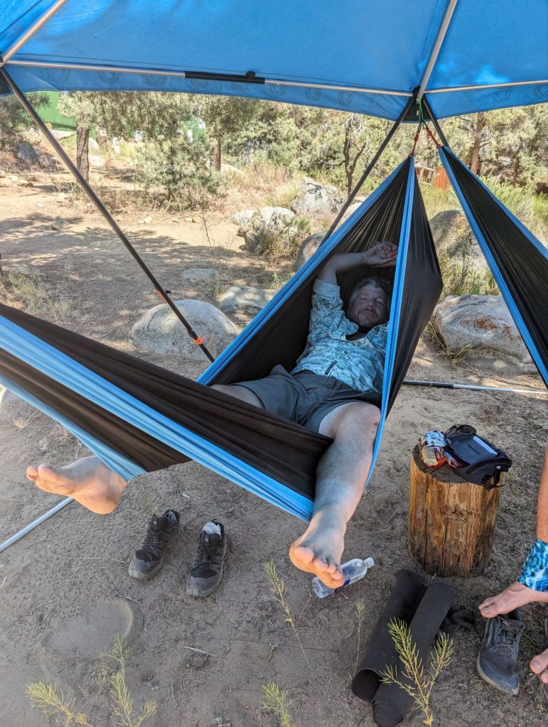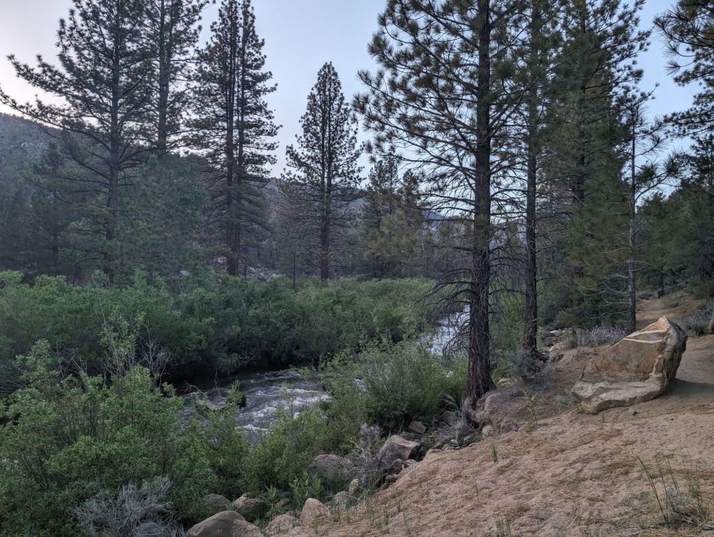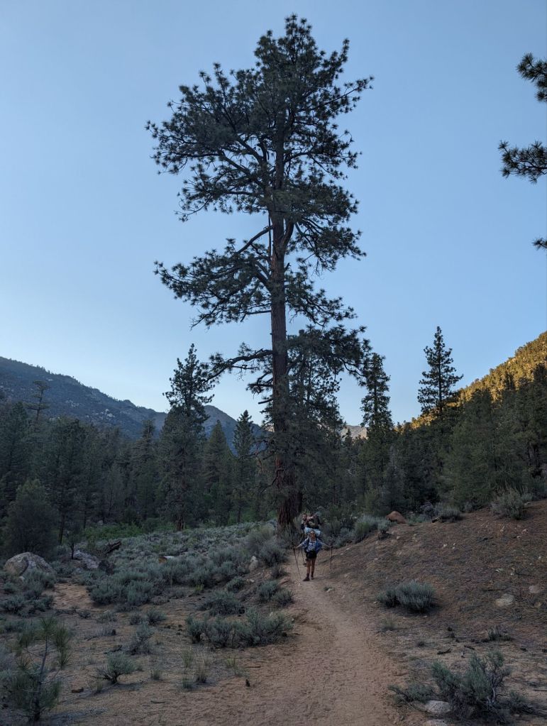 Und auch wenn dieser Teil des Trails ja noch nicht wirklich weit vom letzten Abschnitt entfernt ist, es wirkt doch anders. Es ist grüner, es gibt Bäume(!) und so viel Wasser wie heute habe ich in den letzten 30 Meilen vor dem Abstieg in dieses Tal zusammen nicht gesehen.