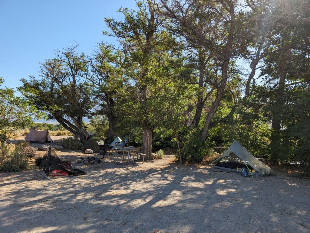 Unser Plan für den Morgen war, in zwei Wellen nach Bishop zu Hitchen und da zu frühstücken. Oats und Moon wollten sich Zeit lassen und an der Tankstelle Snacks holen und dann in die Stadt zu fahren. Sie sind gerade vom Campground runter gegangen, da hielt ein Auto an und fragte die beiden, ob sie eine Fahrt brauchen. Für 30$ würde sie sie fahren. Und sie hätte Platz für uns alle vier. Da haben wir gerne zugesagt!