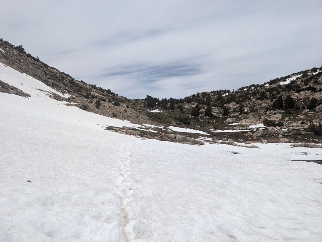 Silver Pass ist wohl der einzige Pass auf dem Trail, bei dem es noch höher geht. Ausnahmsweise führte der Trail erst auf den nahen Gipfel und dann abwärts ins Tal.