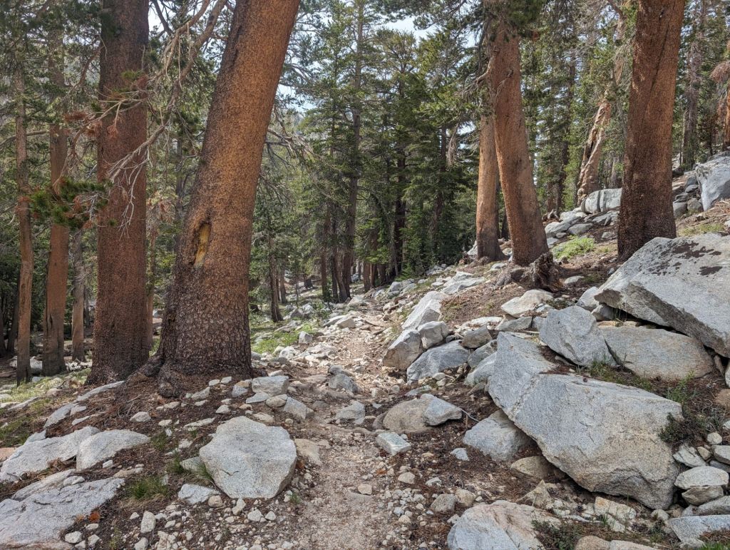 Danach begann der Aufstieg auf Silver Pass. Das waren die ersten 800 Höhenmeter des Tages. Und gab es gestern noch die meisten Serpentinen, dann gab es heute die meisten Treppenstufen des Trails. Und die waren definitiv für jemanden gemacht, der höher gewachsen ist als ich.