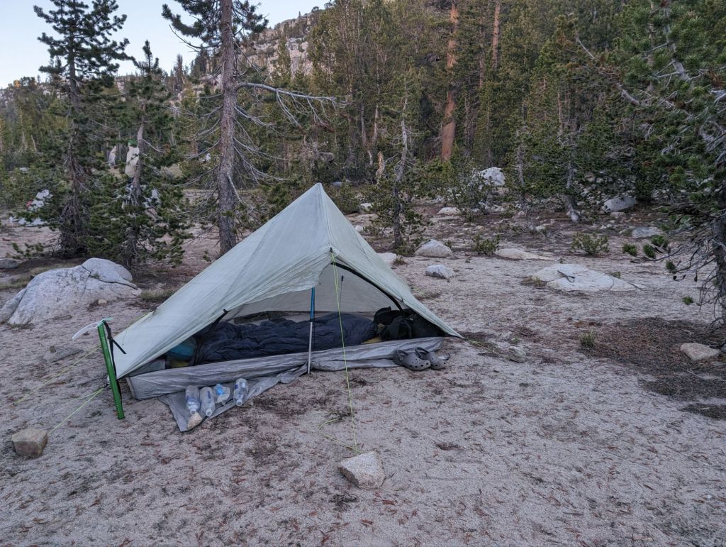 Nah am See liegt die heutige Campsite. Durch die Bäume weg kann man den See sehen.