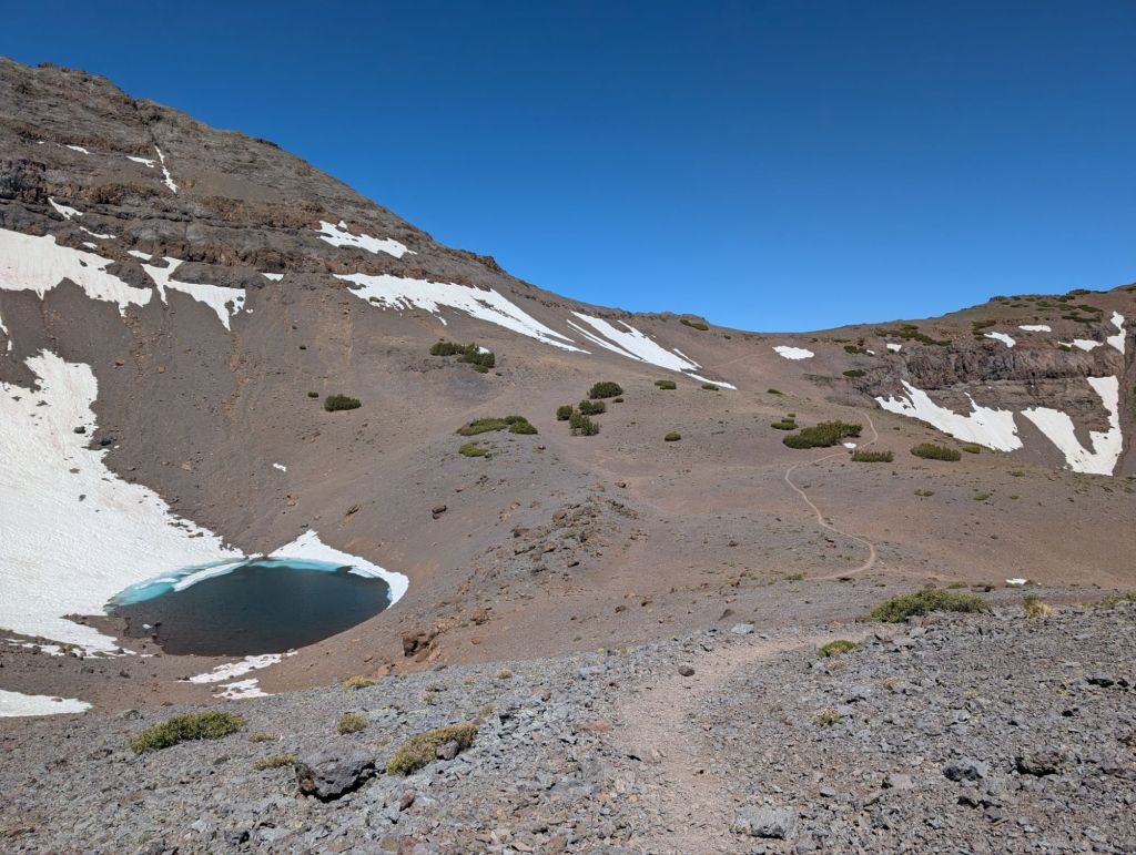 Und so wie der Aufstieg zog sich auch der Abstieg ziemlich. Vor allem da hier auch noch ein paar Schneefelder dazu kamen. Der Schnee war aber schön weich, so das ich einigermaßen gut voran kam. Auch wenn ich das ein oder andere Mal etwas gerutscht bin.