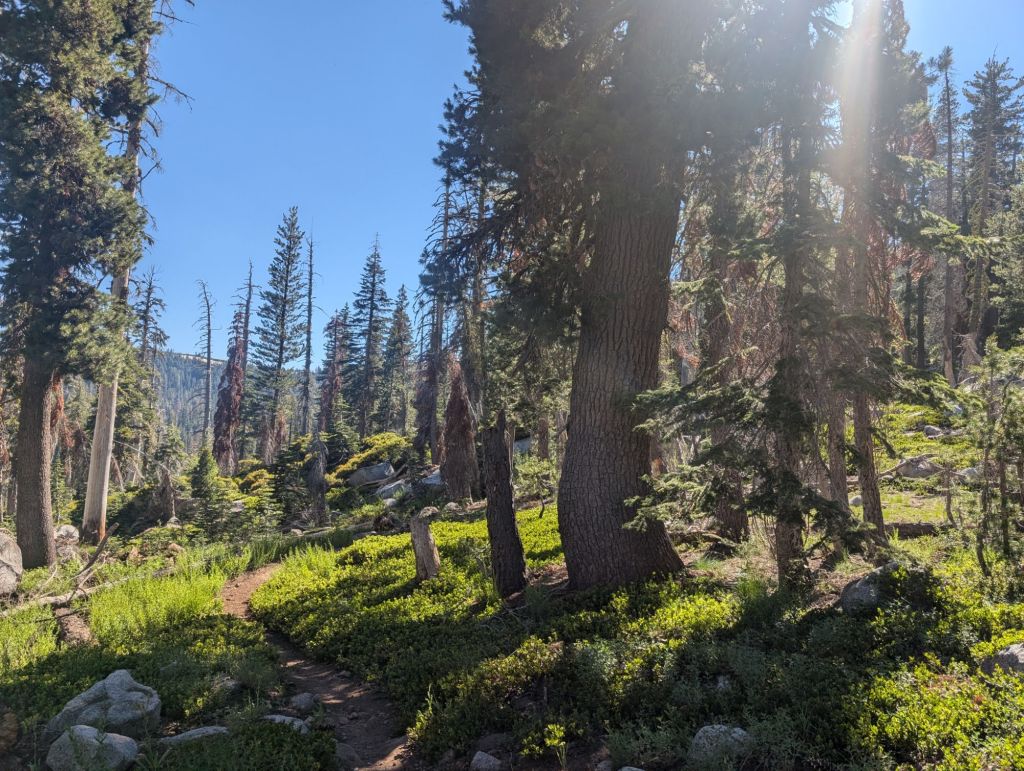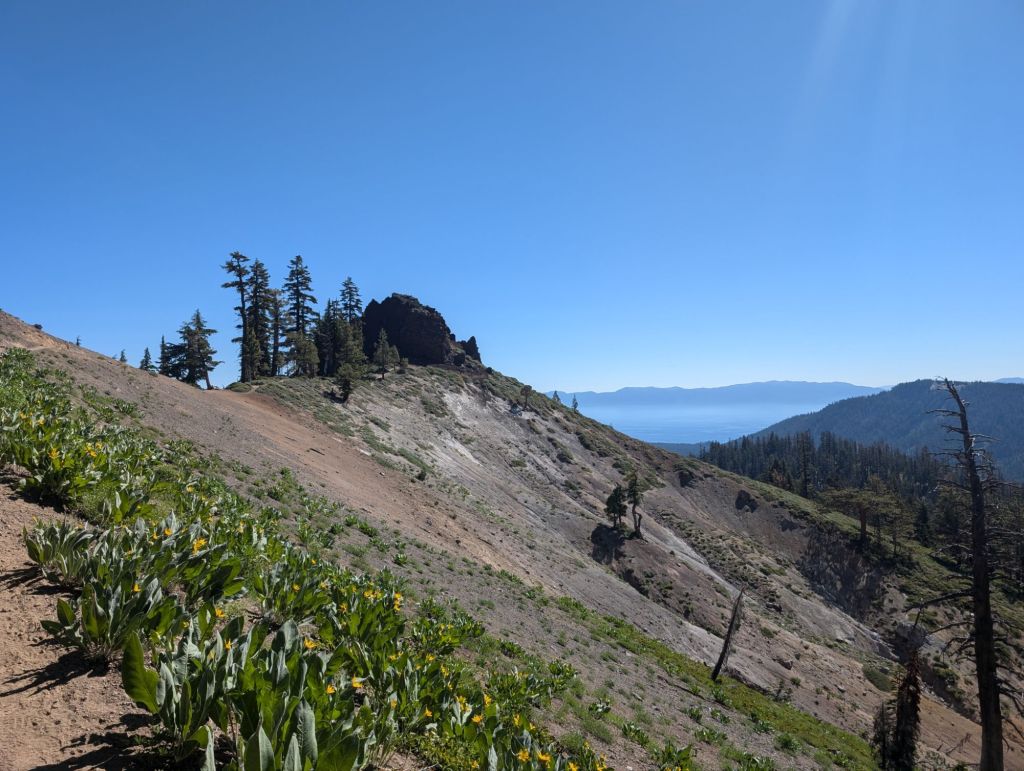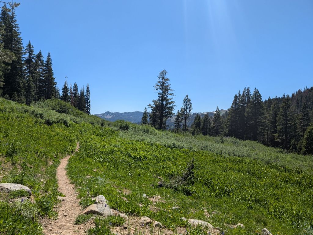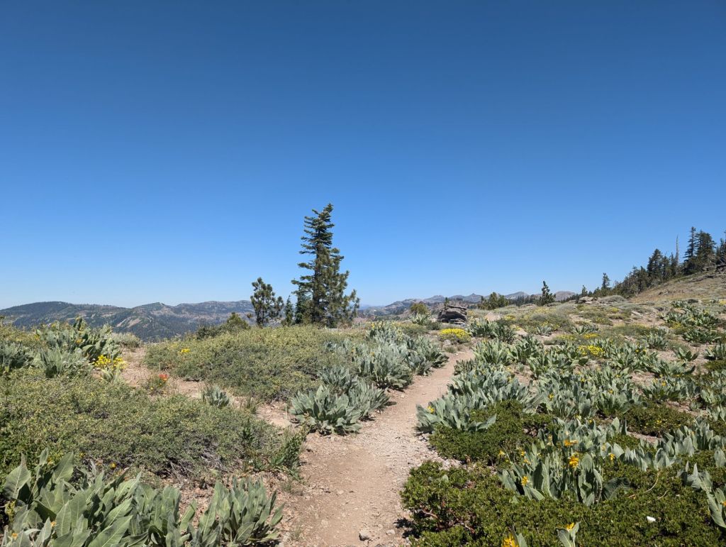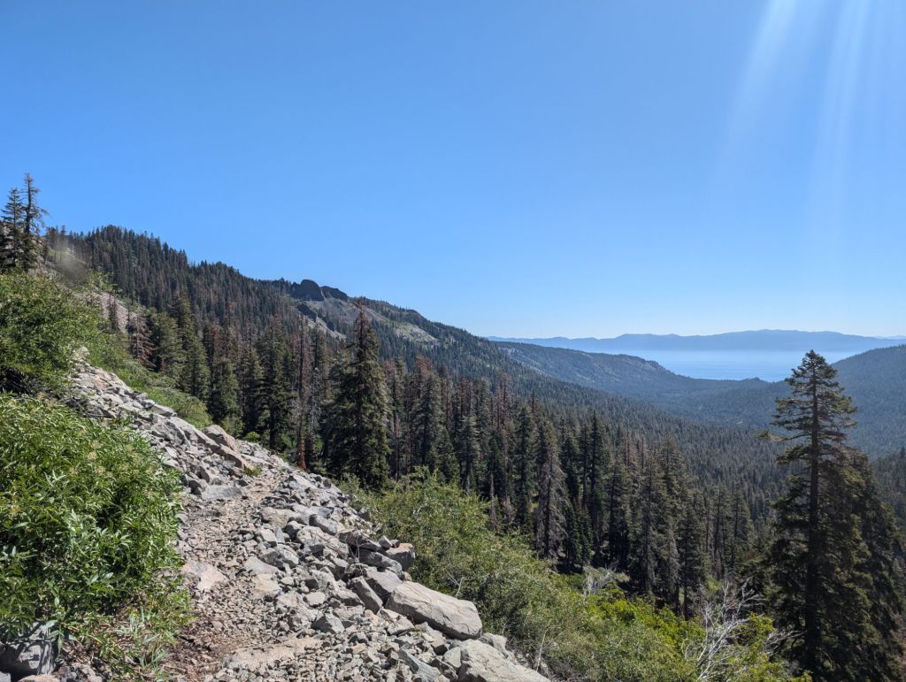 Oben angekommen betrat ich die Granite Chief Wilderness. Ab da verlief der Trail zu weiten Teilen am Hang entlang. Was entsprechend schöne Aussichten mit sich brachte. Und immer wieder kam im Hintergrund Lake Tahoe in Sicht.