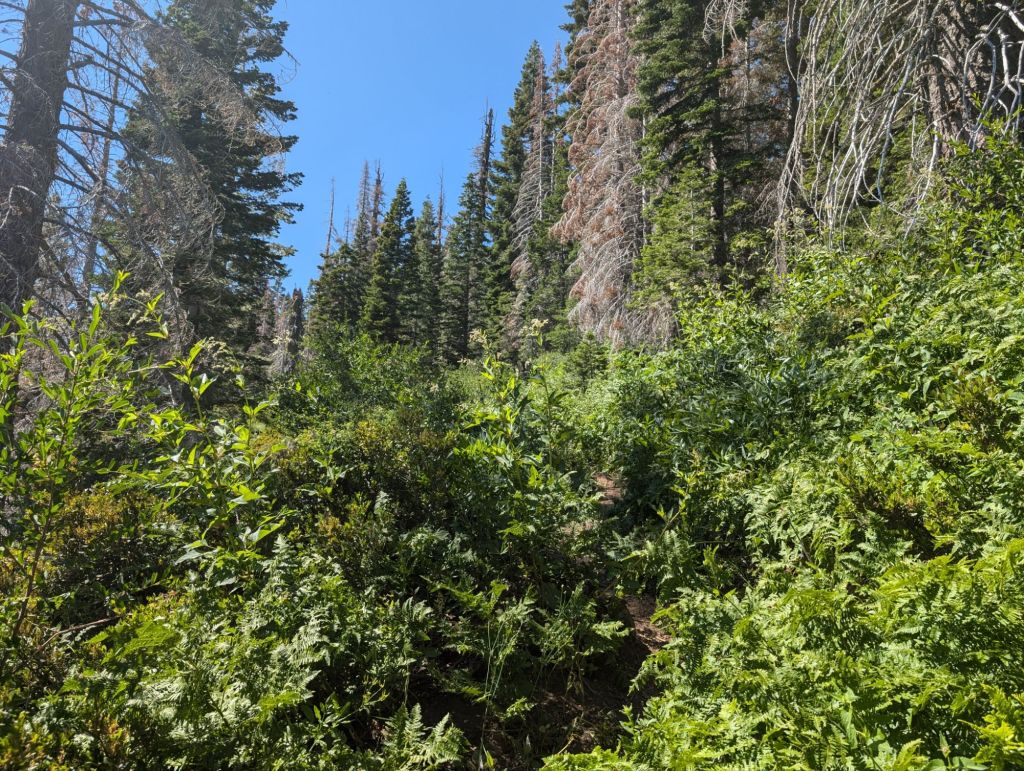 Die ersten vier Meilen verliefen rollend, und ziemlich unspektakulär, durch Wald abwärts. Und ohne Mückenspray wäre ich wahrscheinlich zumindest zum Teil gefressen worden.