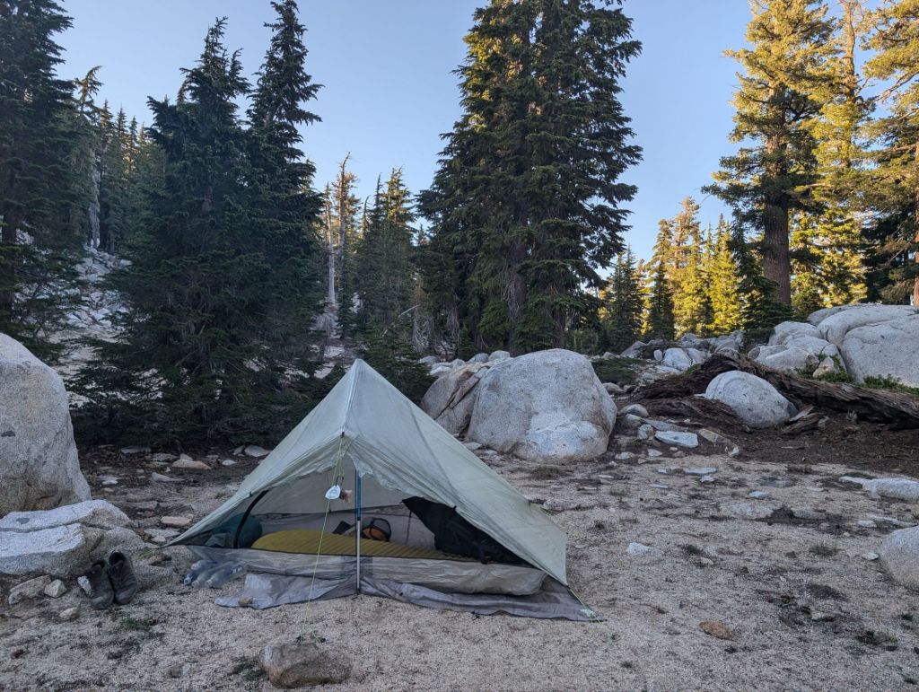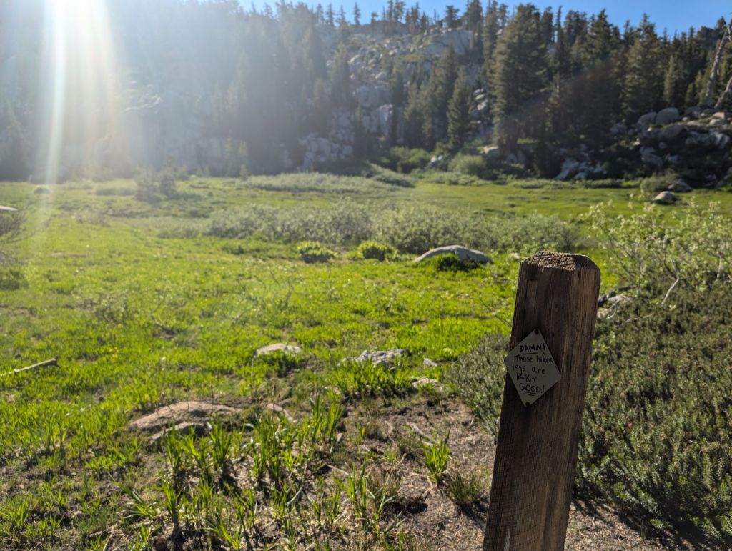 Ich war gerade dabei mein Zelt abzubauen, da hörte ich von dem Zelt gegenüber ein „Bilbo?“. Es war Maddie, die ich das letzte Mal in Kennedy Meadows South gesehen hatte. Sie war dann zeitgleich mit mir mit packen fertig, so das wir die erste Stunde zusammen gewandert sind.