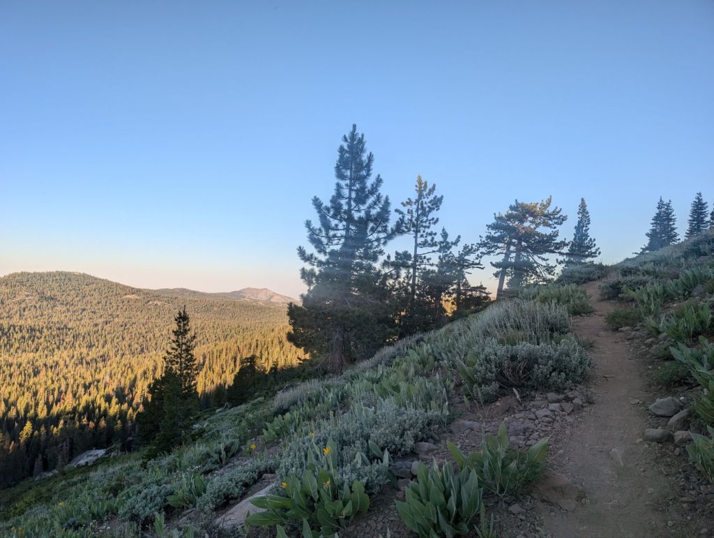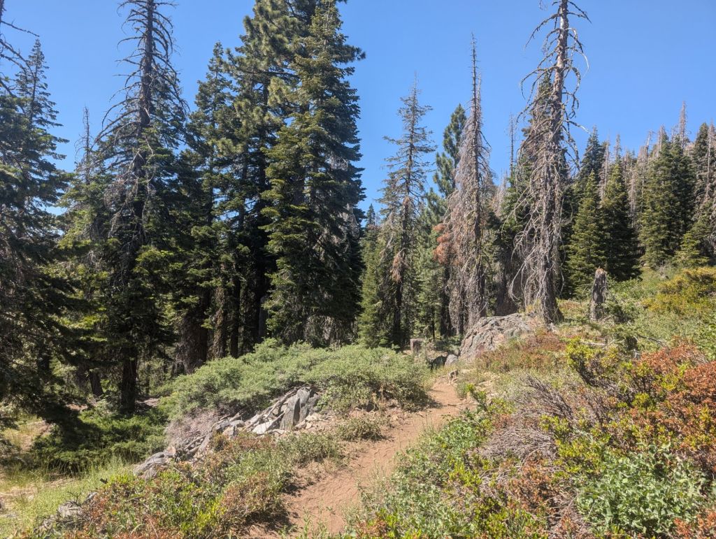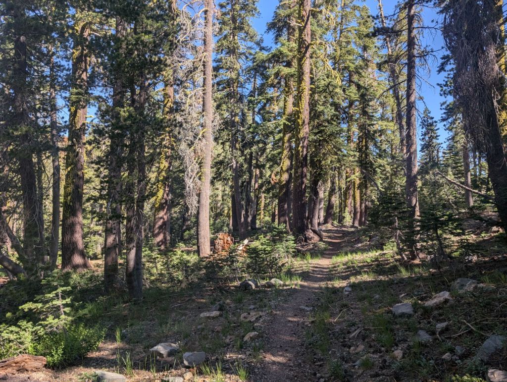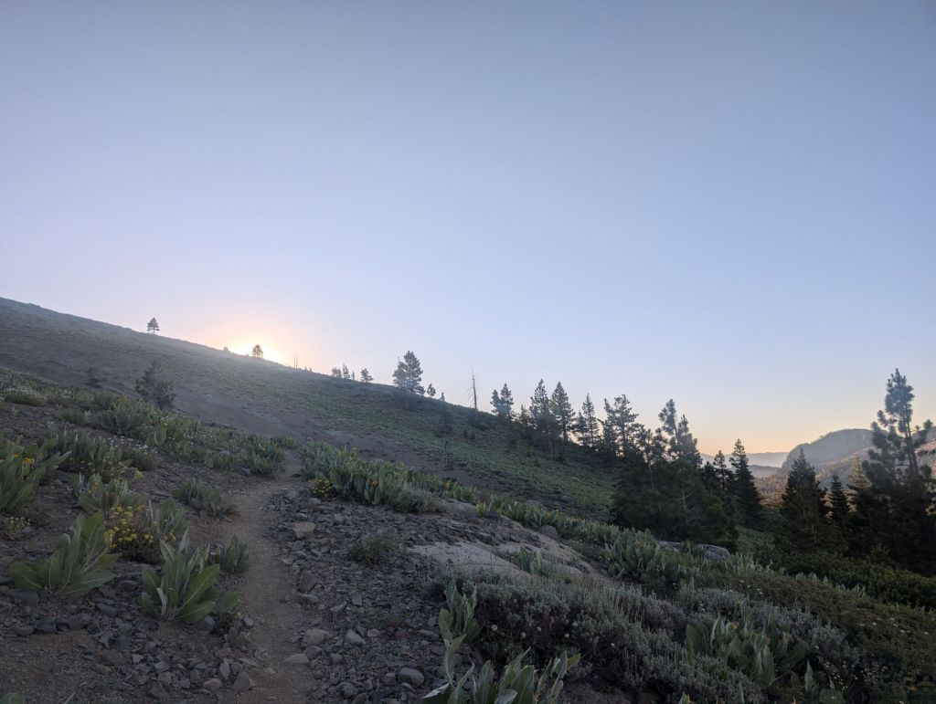 Da wir eh schon saßen, habe ich mich für eine verfrühte Mittagspause entschieden. Und wer kommt da auf einmal angelaufen? Moon. Er hat in Truckee in einen Zwangs-Zero gehabt, da das Postamt am vierten Juli geschlossen hatte.