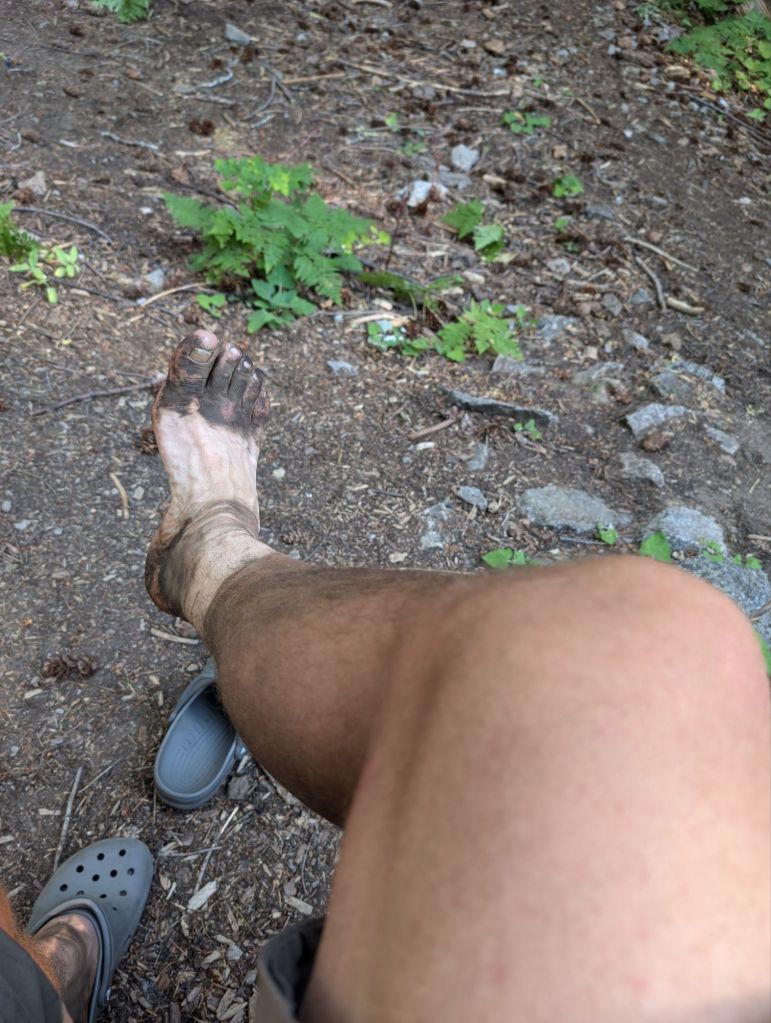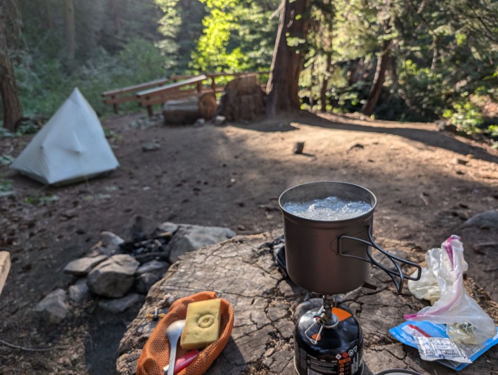 Kurz darauf war ich am Ziel und habe schnell mein Zelt aufgebaut. Um 17:50 war ich schon da. Danach habe ich, während ich Wasser gefiltert habe, meine Füße im Bach gekühlt und gewaschen. Obwohl das glaube ich gar nicht so nötig war. 😉😂