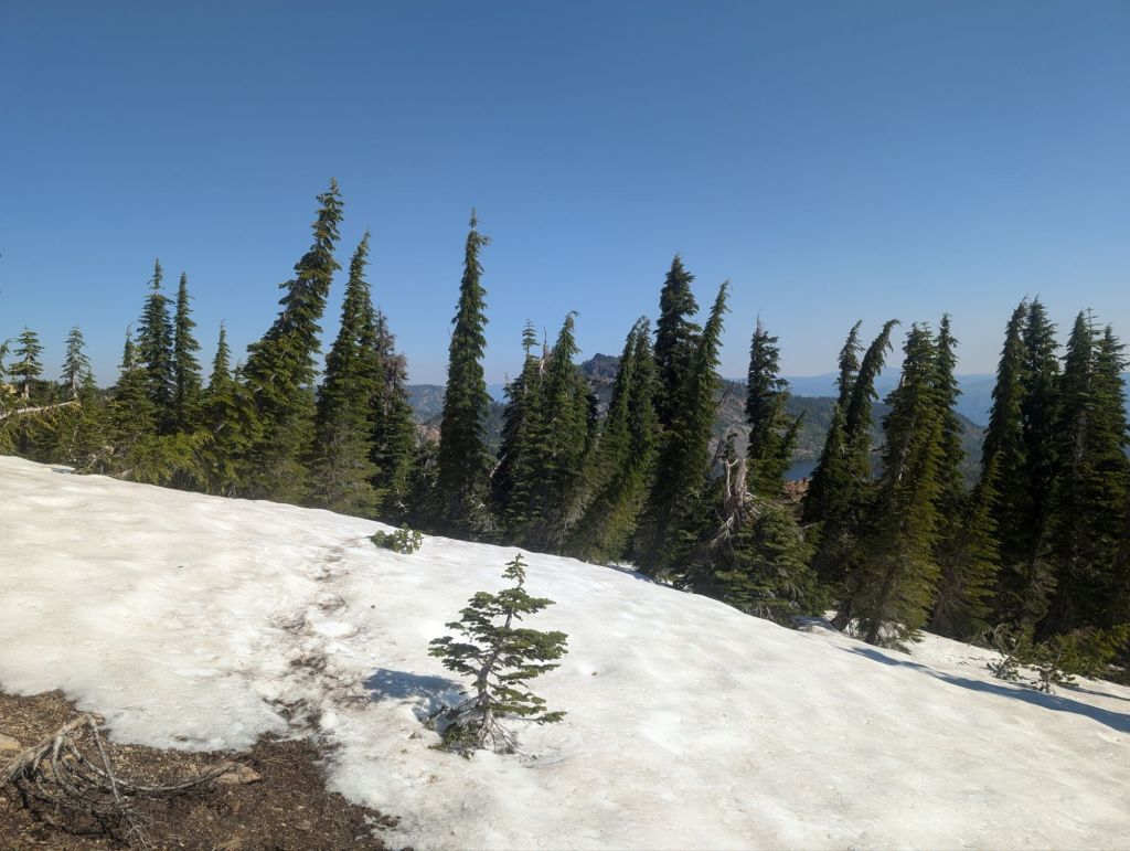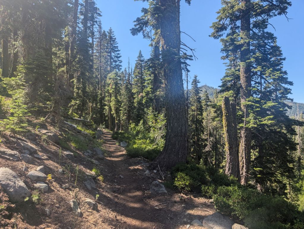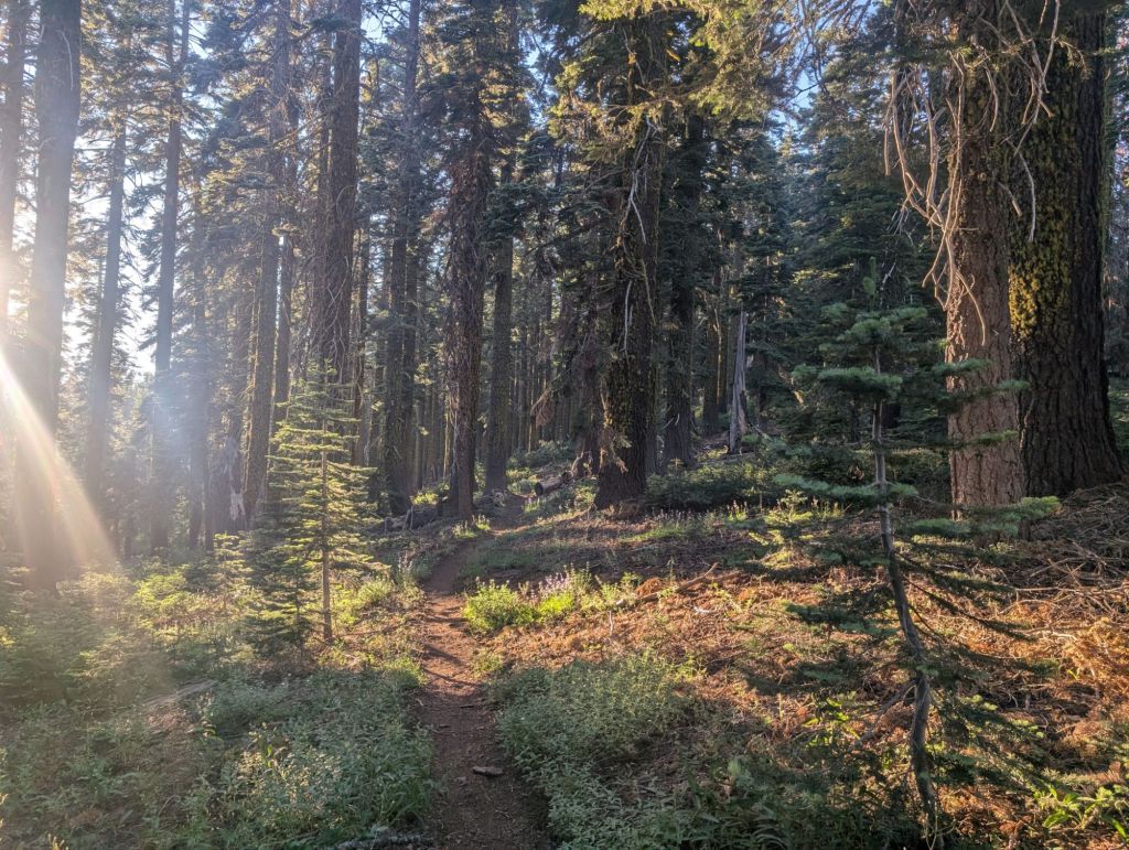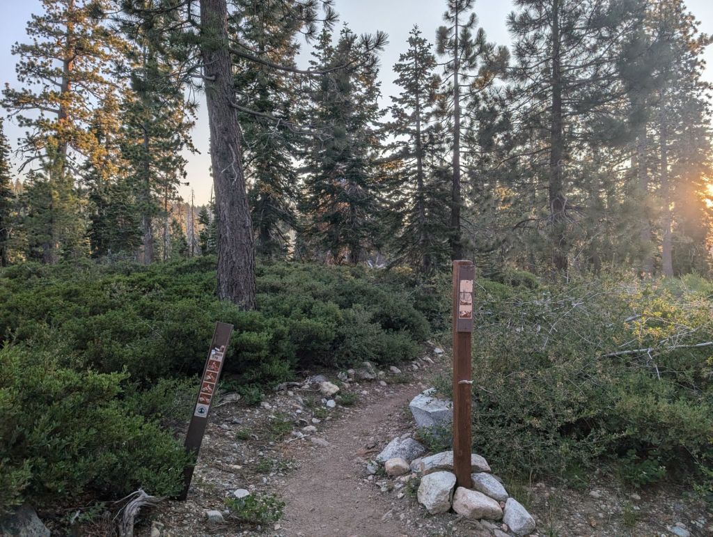 Kurz vor der Abzweigung zum Pond standen da Lost, Oats und Aladin. Wir hätten die Abzweigung zum Pond verpasst. Na gut. Also 0,2 Meilen (natürlich uphill) zurück. Und dann steil und durchs Unterholz bis zum See. Nur waren die Campsites da der bescheiden und das Wasser aus dem See wollte ich nicht. Also eine Viertelmeile zurück zum Trail und von da 0,5 Meilen zu meinem ursprünglichen Ziel.