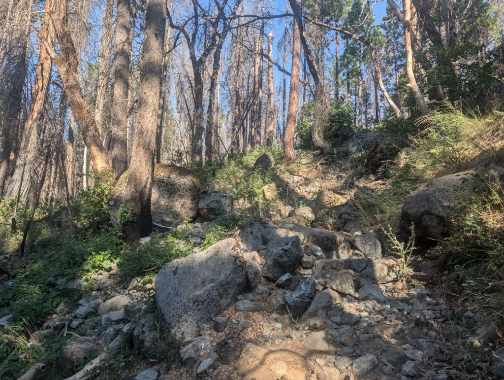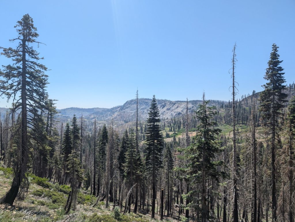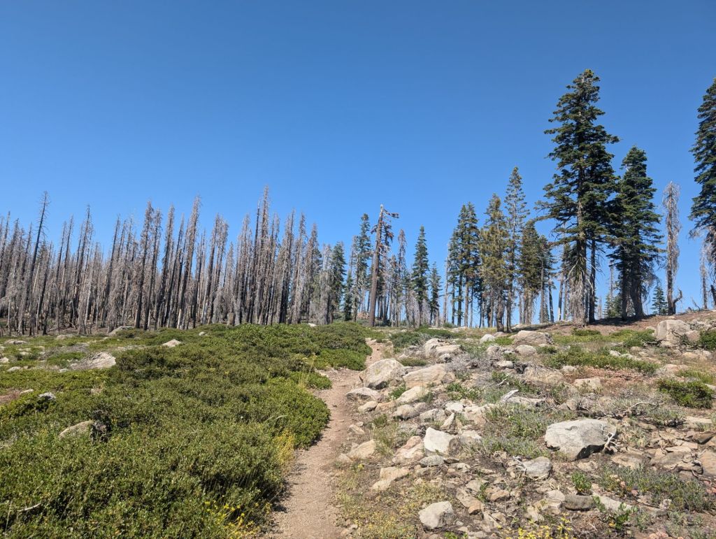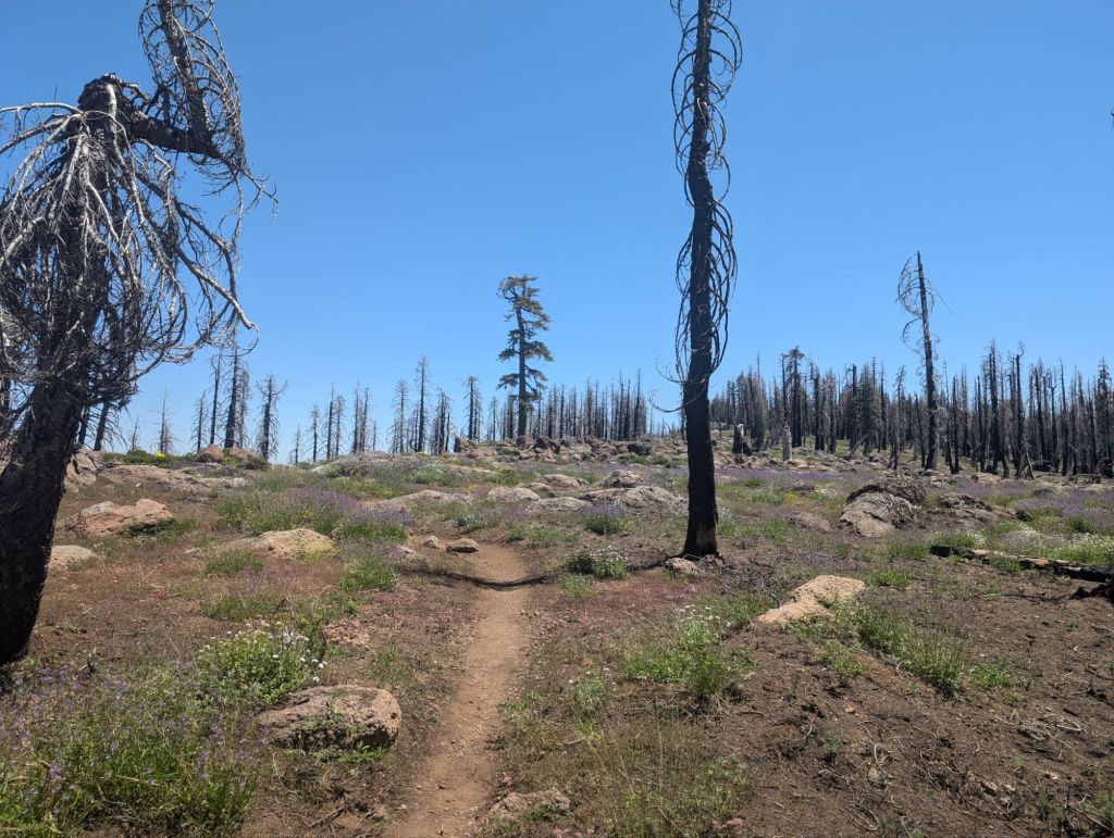 Nach einer langen Pause von über 2h habe ich mich an das letzte Stückchen des Tages gemacht. Vier Meilen hin zur Cold Springs. Und die vergingen nicht nur schnell, sondern waren trotz der Burn Zone auch schön.
