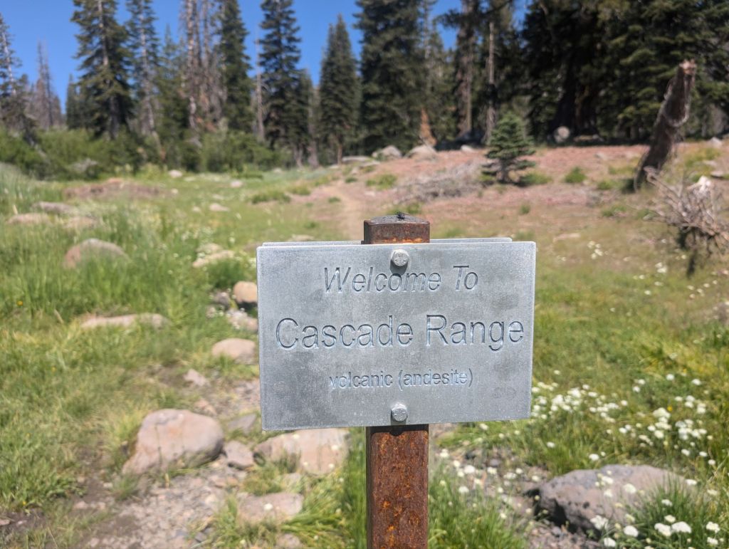 Nach etwas über 2/3 des Aufstiegs kam eine ganz besondere, geologische Marke. Die Grenze zwischen der Sierra Nevada und dem Kaskadengebirge. Oder die Grenze zwischen Granit und Vulkan. Unglaublich, aber ich habe die Sierra Nevada tatsächlich vollständig längs durchwandert!