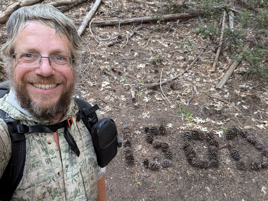 Kurz vor dem Ziel habe ich den nächsten Meilenstein überschritten. Und der ist etwas besonderes. Auf Grund der Brände werde ich morgen ein gutes Stück des Trails überspringen. Das ist also mein letzter Meilenstein mit durchgängigen Schritten. 😥