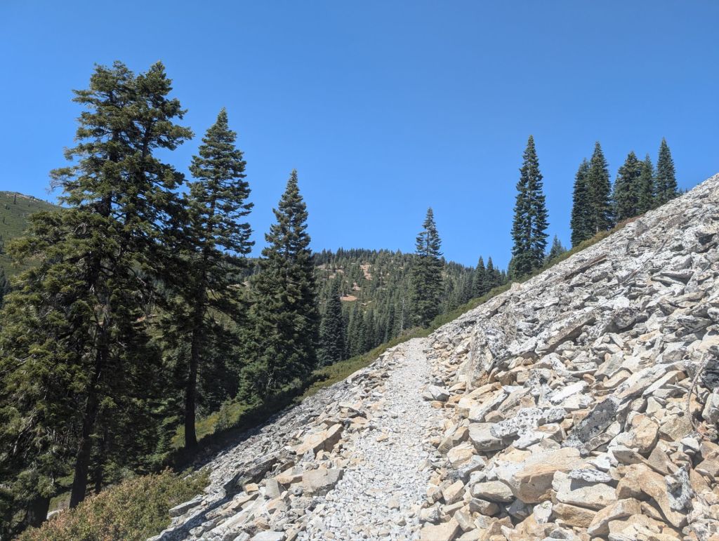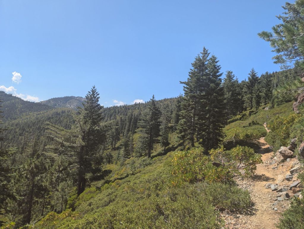 Gegen halb zehn war ich zurück auf dem PCT. Der verlief hier noch rollend nach oben. Und Wasser gab es auch noch häufig.