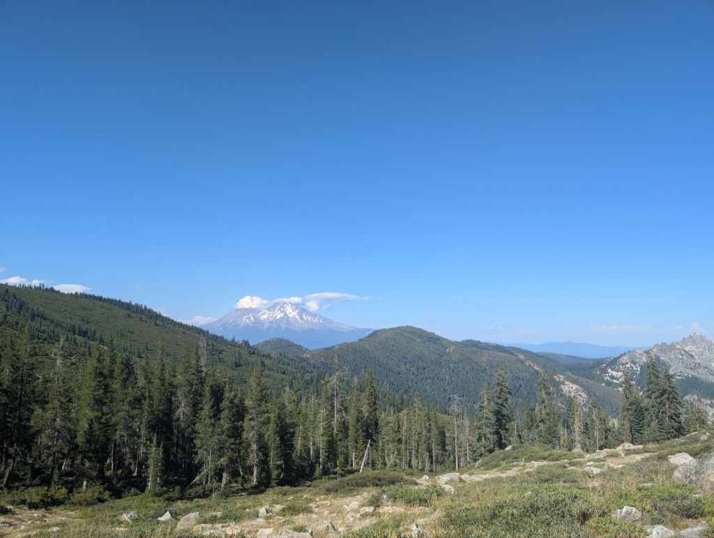 Und die Campsite bei Meile 1.520 hatte wirklich einen Wahnsinns Ausblick auf Mount Shasta!