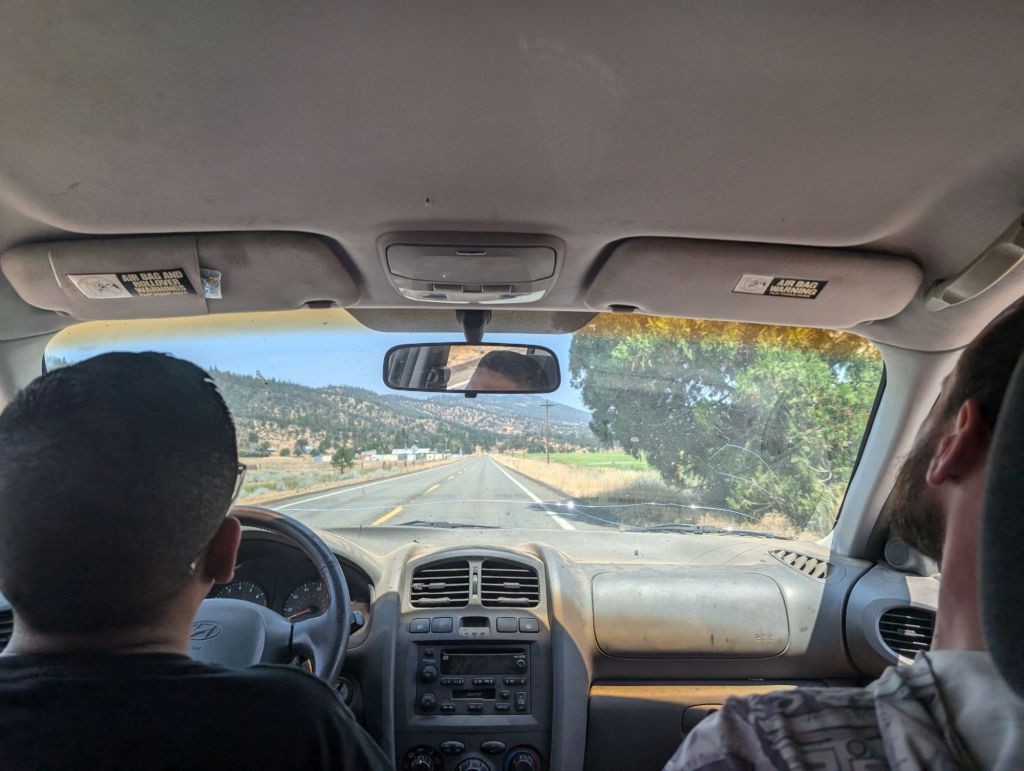 Da angekommen haben wir alle etwas Pause im Schatten gemacht. Die Fahrt über die kurvige Bergstraße hat einige von uns Reisekrank gemacht.