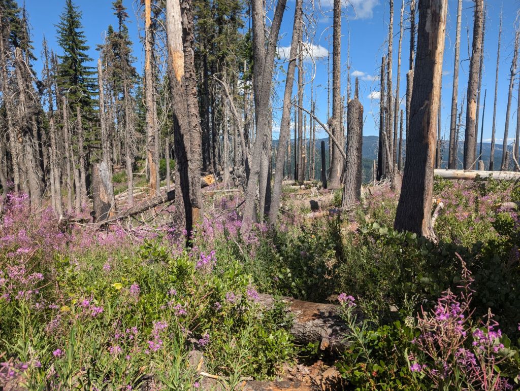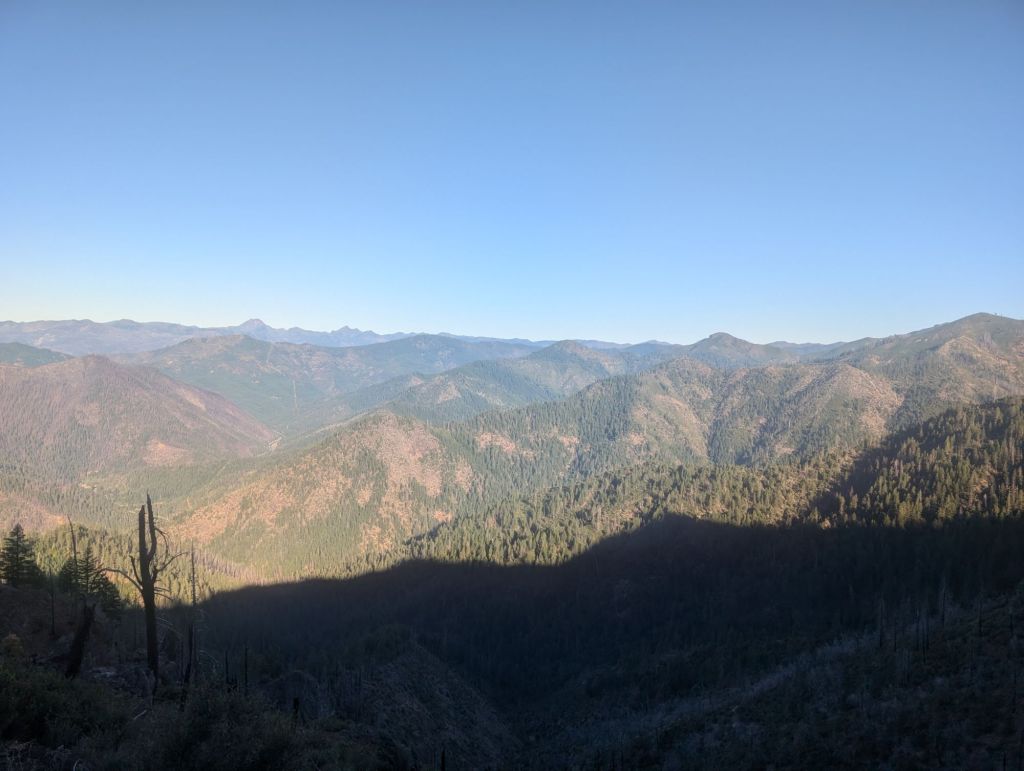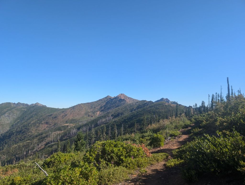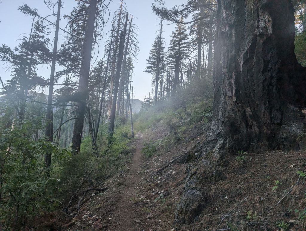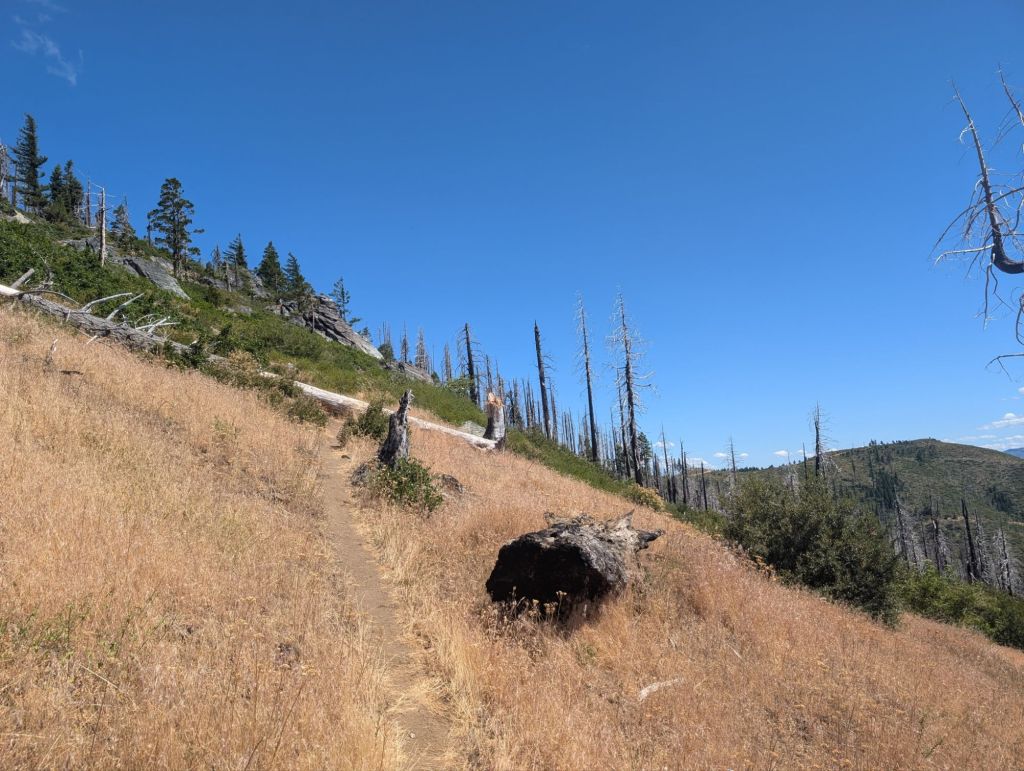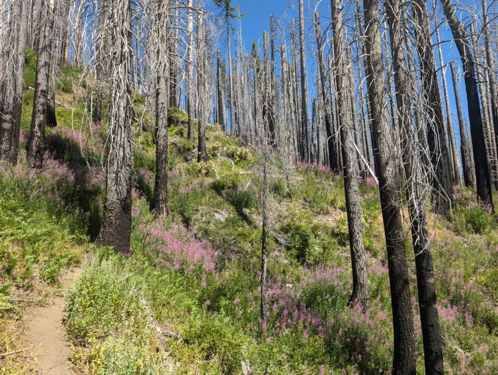 Dazu kam eine weitere Burn Zone. Und die hat richtig Kraft gekostet. Ohne Schatten über zig Baumstämme klettern. Und teilweise war der Trail so überwachsen, dass ich Ihn verloren habe und nur dank meiner Karte wieder gefunden habe.